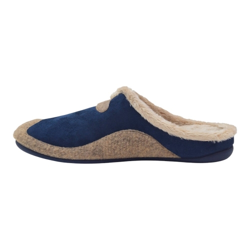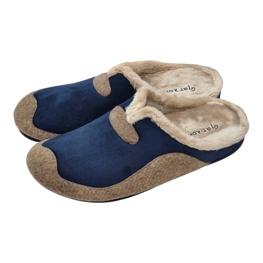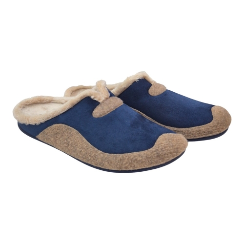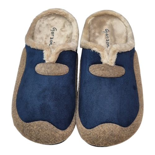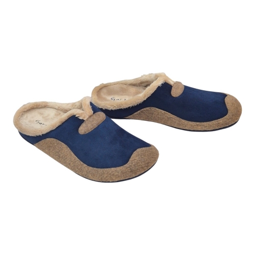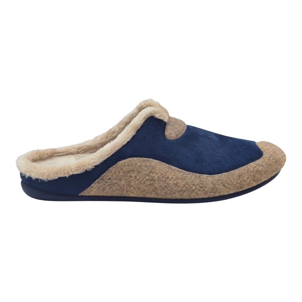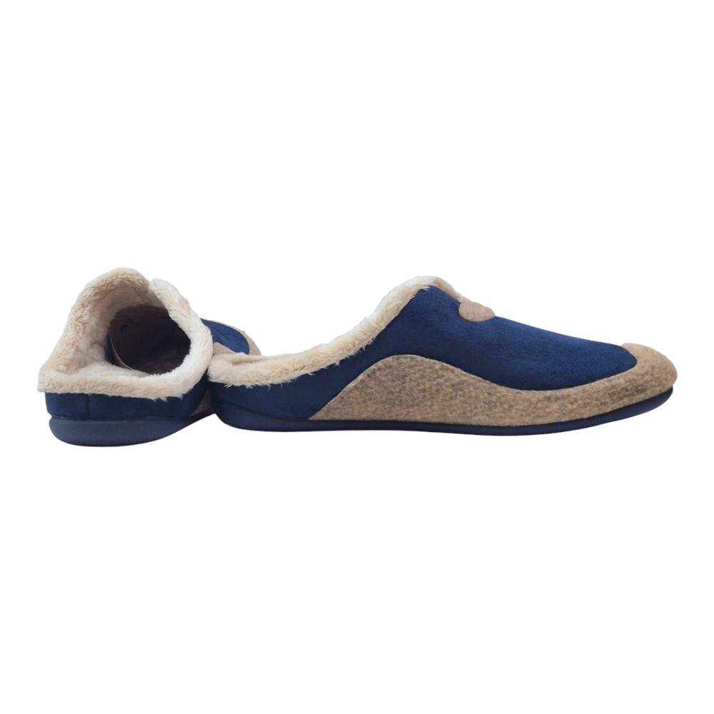 Este modelo destaca por su elegante combinación de colores Aitana Marino. El cuerpo principal está fabricado en un tejido aterciopelado de alta calidad en color azul profundo, que se complementa visualmente con una banda y detalles decorativos en tono marrón (Aitana). Su diseño tipo zueco abierto en el talón facilita el calce rápido sin renunciar a una sujeción óptima del pie.
