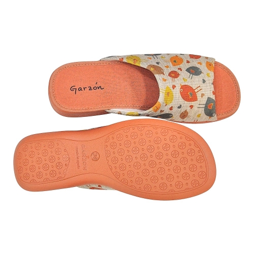 Disfruta del máximo confort y un diseño alegre con las zapatillas de estar por casa Garzón Modelo 2530.209. Este modelo tipo chinela con puntera abierta es la elección perfecta para quienes buscan frescura y libertad de movimiento sin renunciar al estilo.