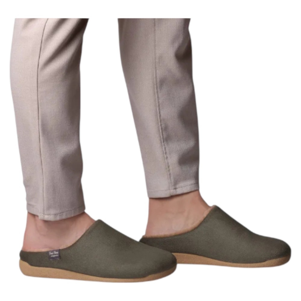 Disfruta del confort definitivo en casa con las zapatillas NOTI-BD de Toni Pons. Este modelo tipo zueco abierto para hombre, en un elegante color Caqui/Khaki, combina a la perfección funcionalidad y un estilo sobrio y moderno. Diseñadas para ofrecer una calidez y comodidad extraordinarias, se convertirán en tu calzado favorito para relajarte en casa.