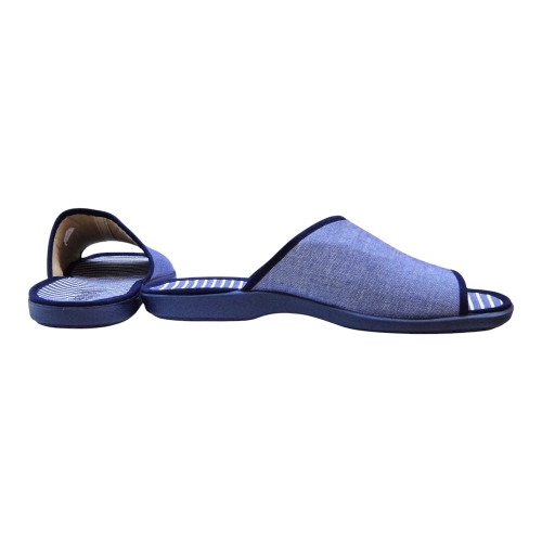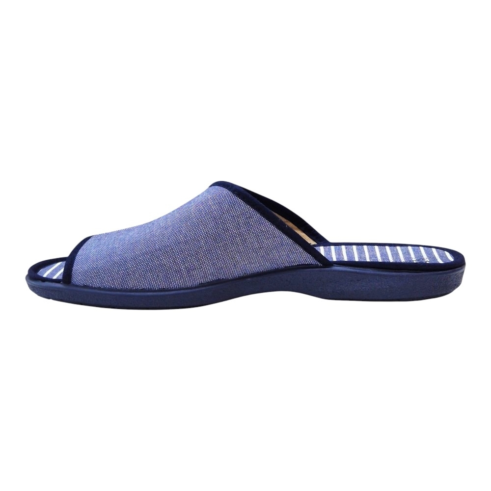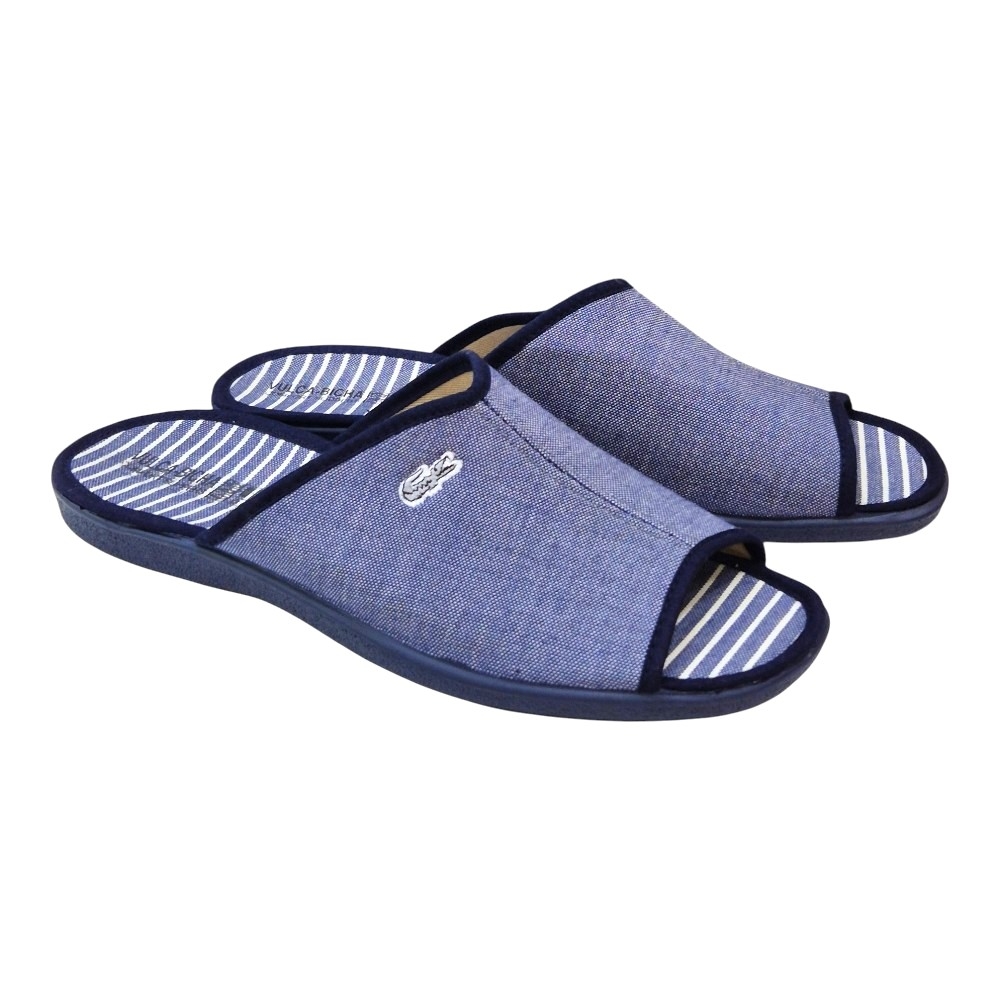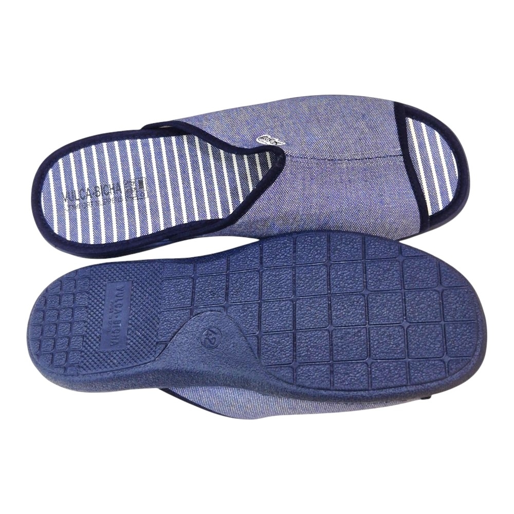 Suela Antideslizante: Incorpora una suela de caucho vulcanizado en color azul marino, flexible y con grabado especial para garantizar un agarre seguro en cualquier tipo de suelo doméstico.