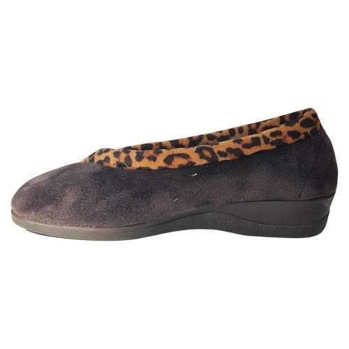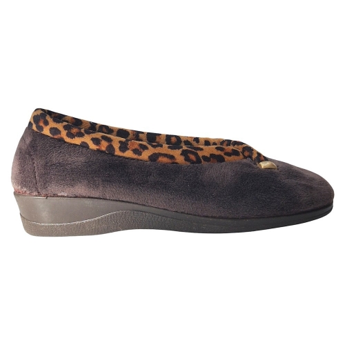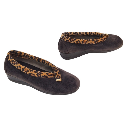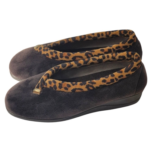 Detalle Distintivo: El borde de la zapatilla está adornado con un llamativo tejido de estampado animal print de leopardo en tonos marrón y negro, que le da un toque moderno y sofisticado.