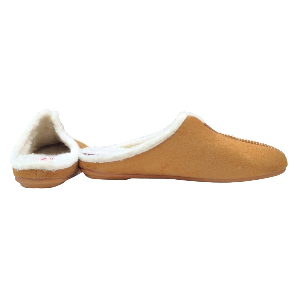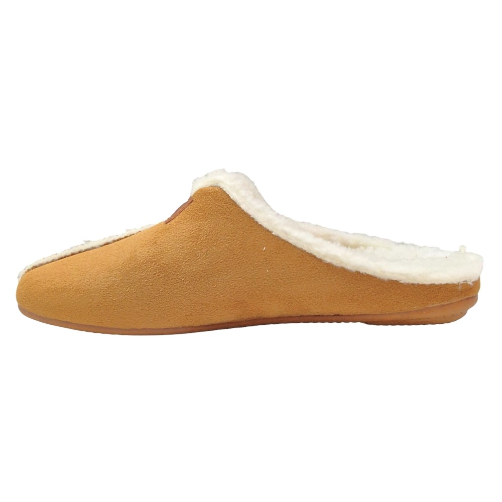 Estas chinelas tipo mule (descalzas) están diseñadas para ofrecer el máximo confort y calidez en casa. Su corte se presenta en un suave material textil con efecto ante, que aporta un tacto agradable y una estética clásica y acogedora.