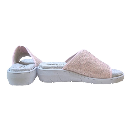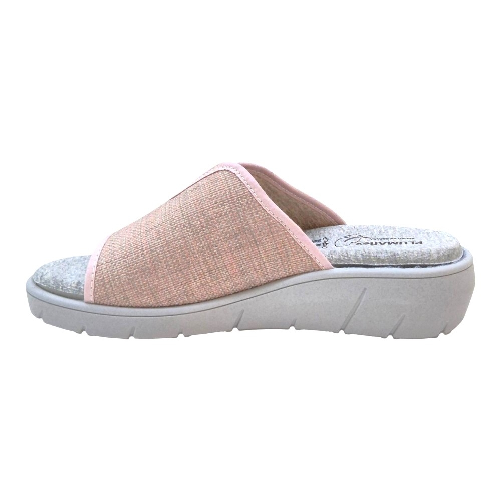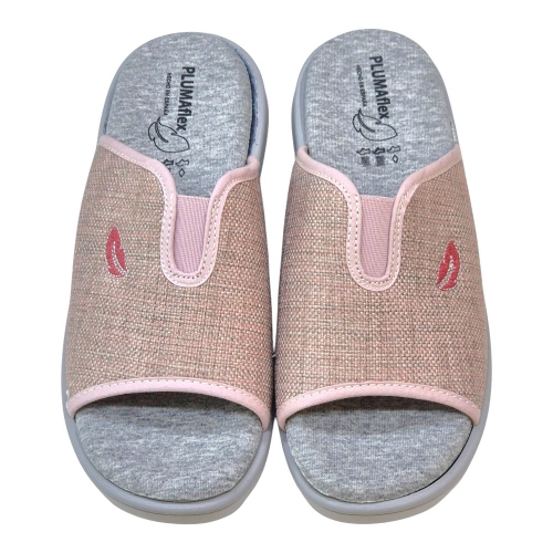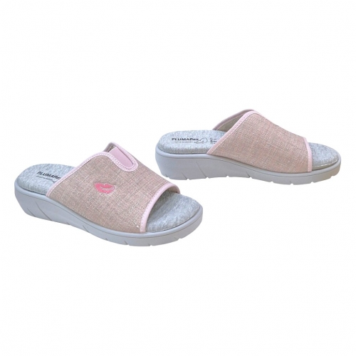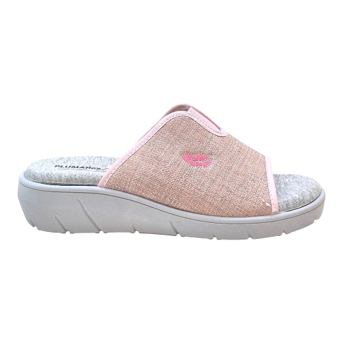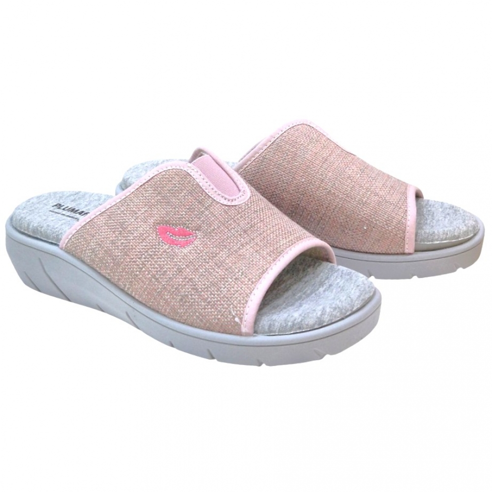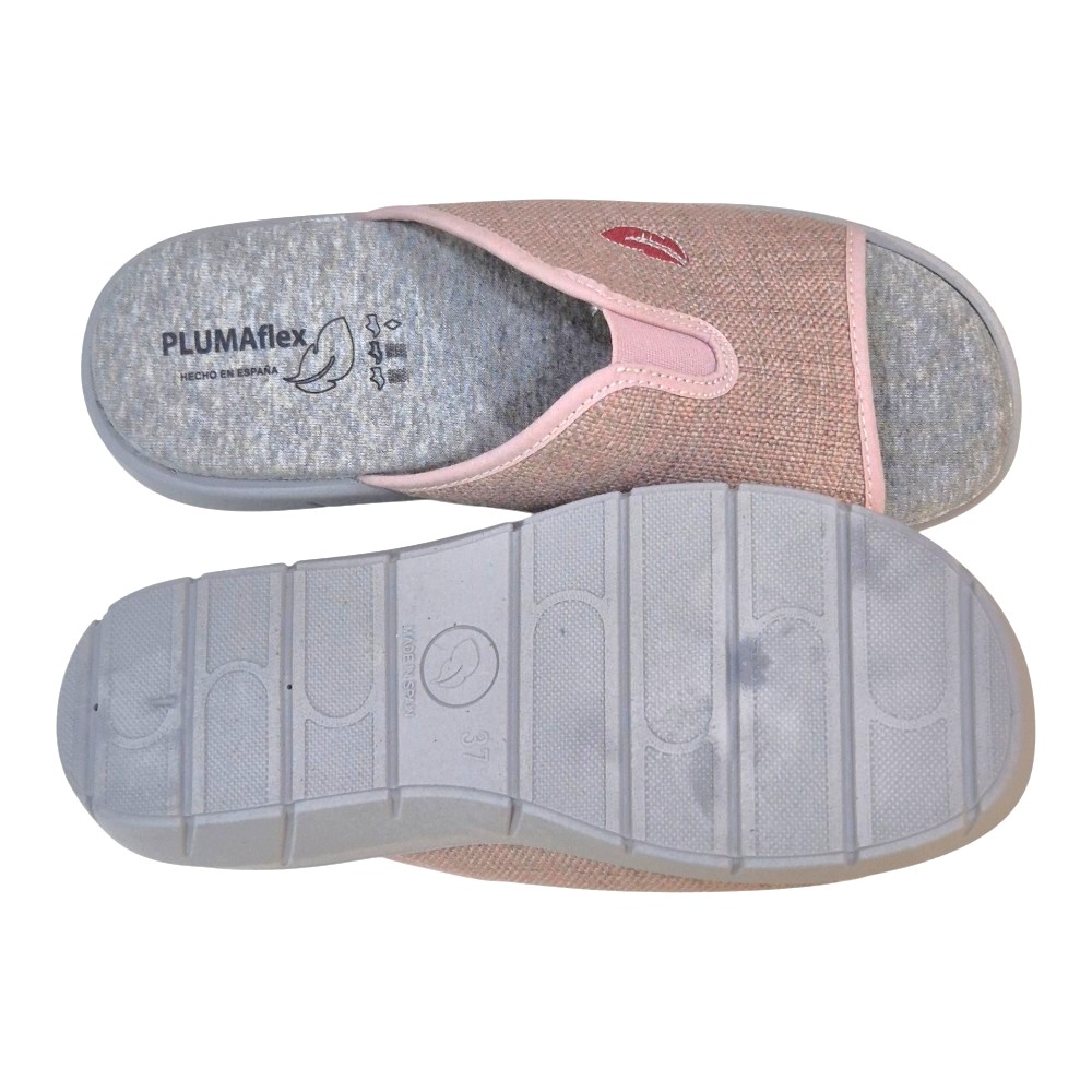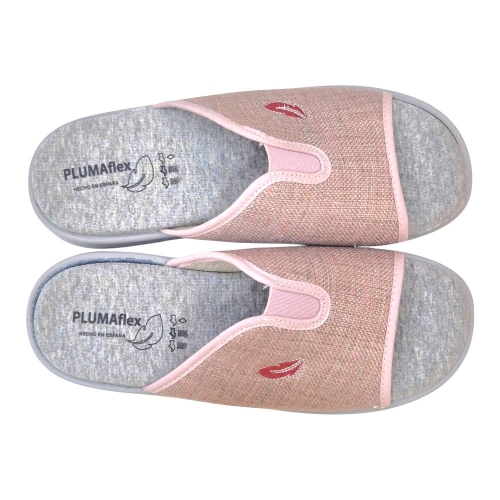 Disfruta del máximo confort al llegar a casa con las zapatillas PLUMAflex Modelo 14508. Este diseño tipo chinela con puntera abierta combina una estética delicada en tonos rosados con la ingeniería de descanso avanzada que caracteriza a la marca. Ideales para quienes buscan un calzado ligero, fresco y extremadamente cómodo.