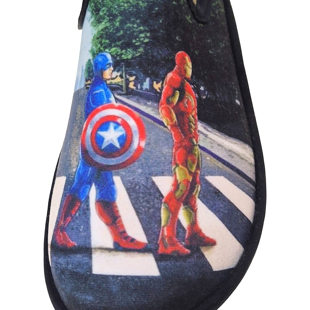 El modelo presenta una ilustración exclusiva inspirada en la cultura pop, recreando la icónica escena del paso de cebra de Abbey Road con los superhéroes más conocidos: Hulk, Thor, Capitán América e Iron Man. El diseño es complementario entre ambos pies, formando la imagen completa al juntarlos.