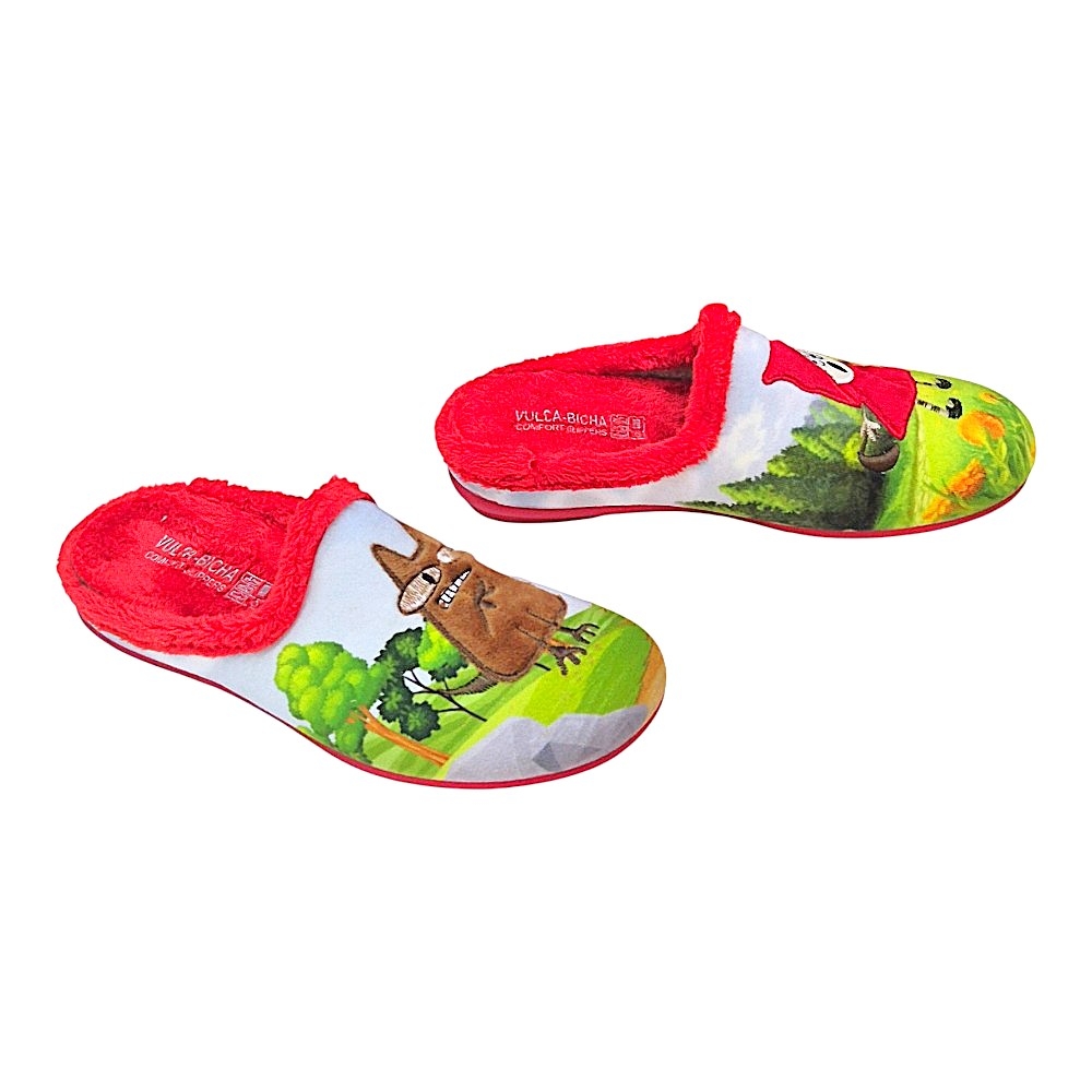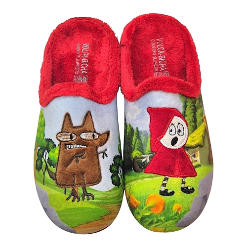 ¡Dale un toque de cuento a tus momentos de relax! Estas zapatillas de la reconocida marca Vulca-Bicha no solo ofrecen la máxima comodidad para el hogar, sino que presentan un diseño original y asimétrico inspirado en el clásico de Caperucita Roja.