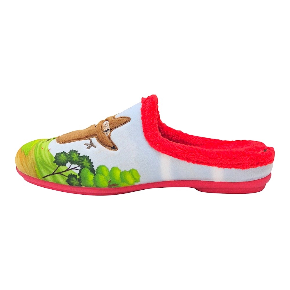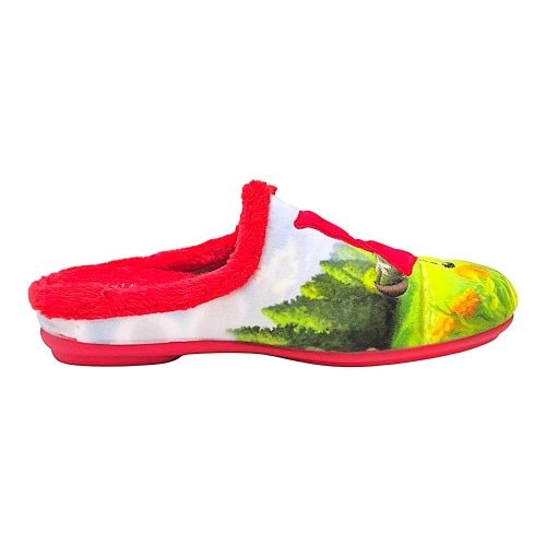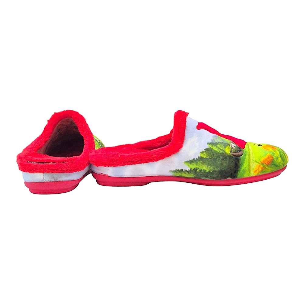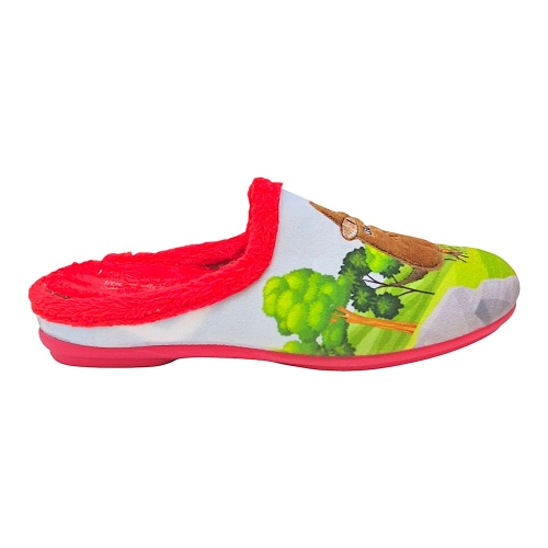Suela: Goma flexible y antideslizante en color rojo a juego, ideal para caminar con seguridad sobre cualquier superficie del hogar.