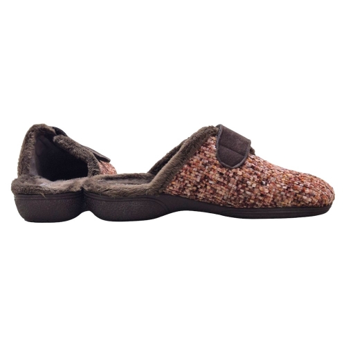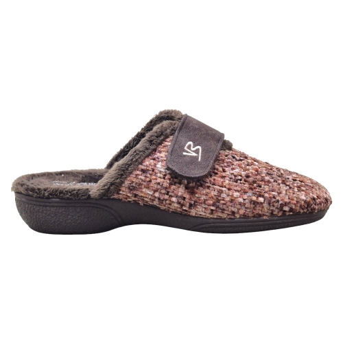 Diseño Texturizado: La parte superior presenta un tejido de fantasía o tweed multicolor en tonos marrones y ocres (denominado KERCLA MARRÓN), ofreciendo un estilo hogareño y sofisticado a la vez.
