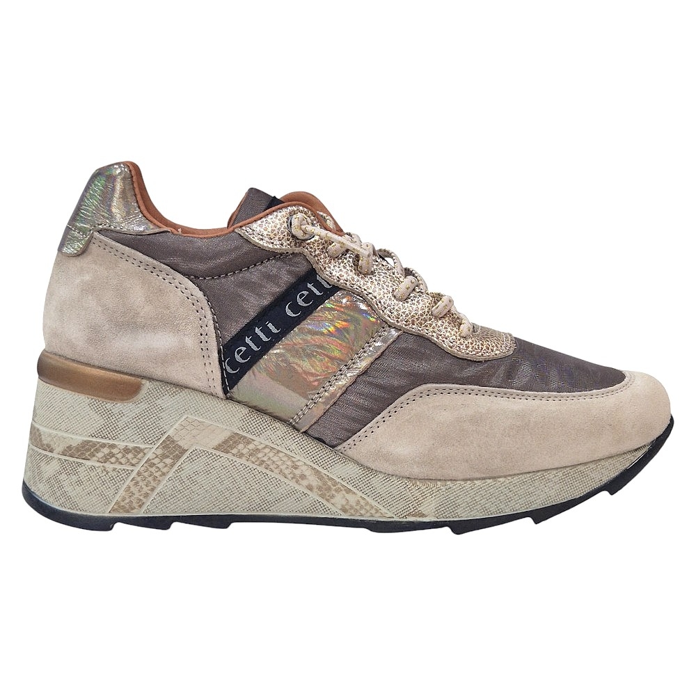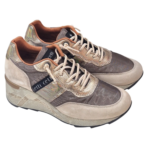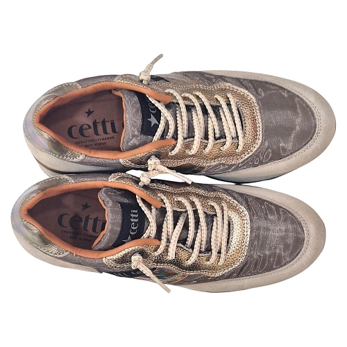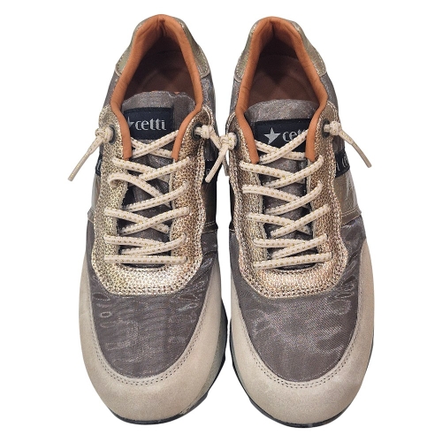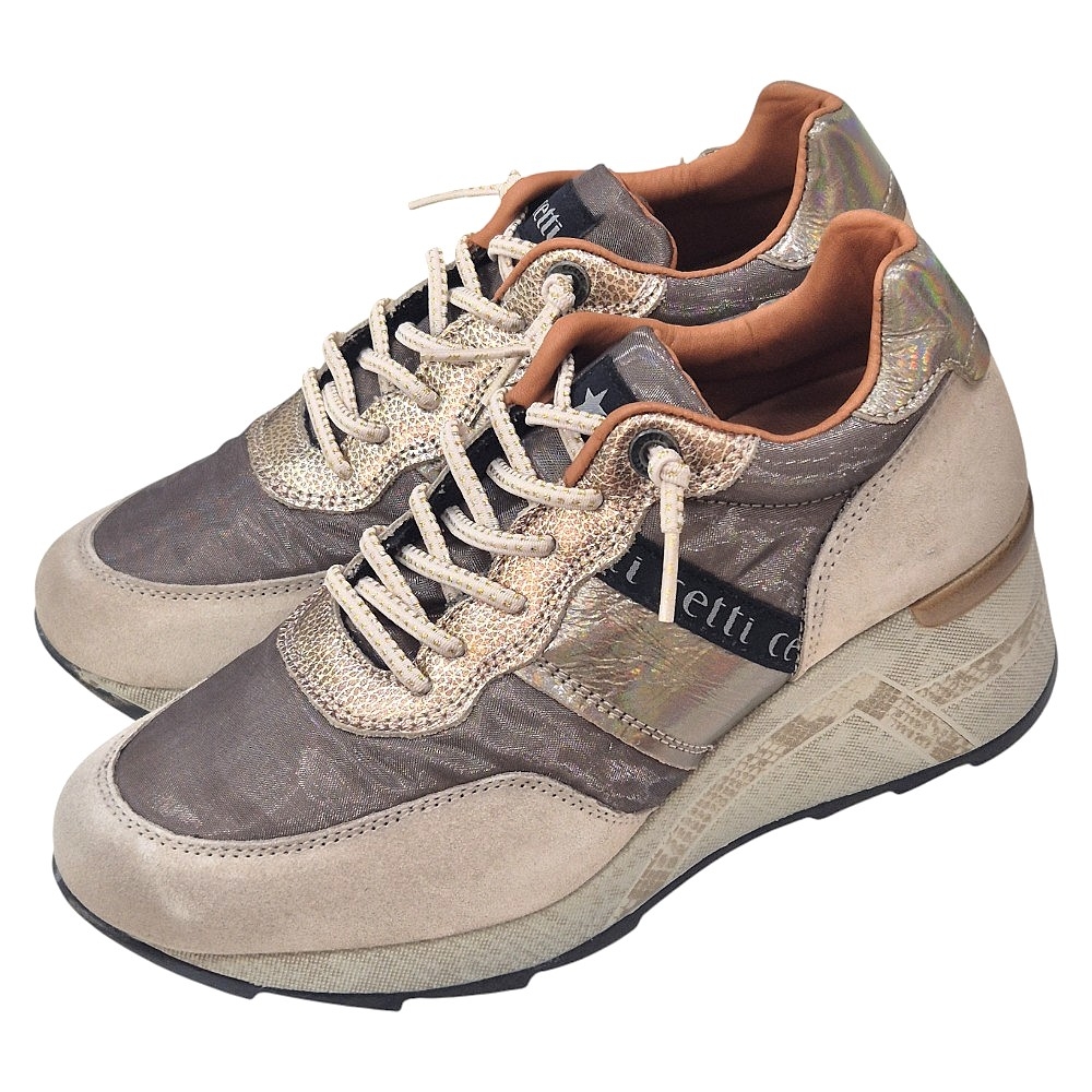 Diseño Exclusivo: La parte superior de la zapatilla combina ante de alta calidad en tonos neutros con un tejido de malla (mesh) iridiscente que aporta un toque de brillo y originalidad. La banda lateral con el logo de Cetti añade un detalle distintivo y moderno.