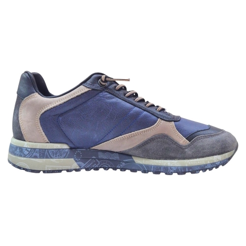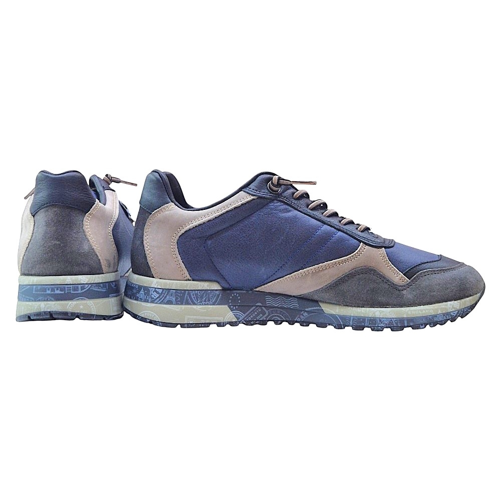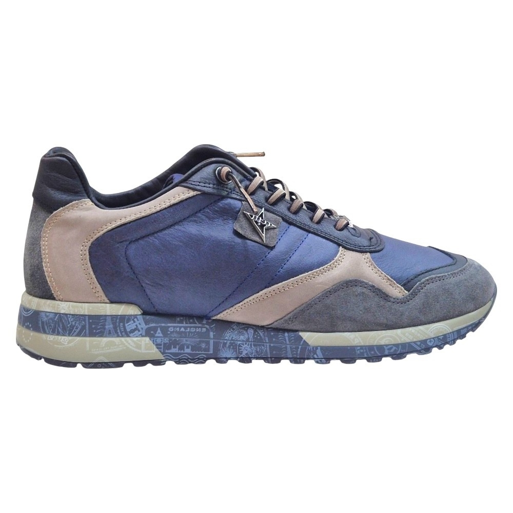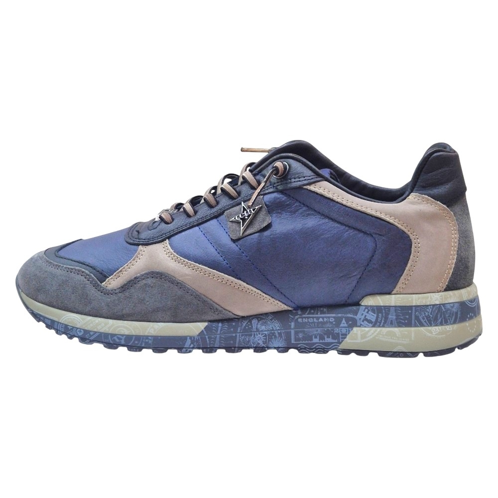 Diseño Exclusivo y Atractivo: La parte superior de la zapatilla combina de forma armoniosa el color azul marino intenso con detalles en tono beige, creando un contraste elegante y versátil. La mezcla de materiales de alta calidad, como el ante y el cuero, le confiere un acabado premium y duradero.