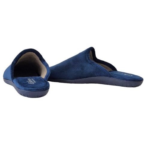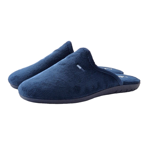 Zapatillas de casa azules, estilo mule para hombre, tejidas en suapel, fabricadas en España y con suela de goma.