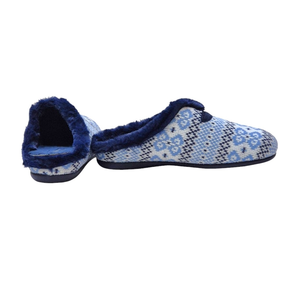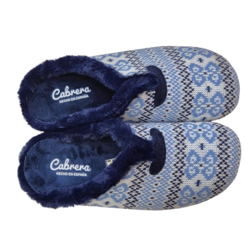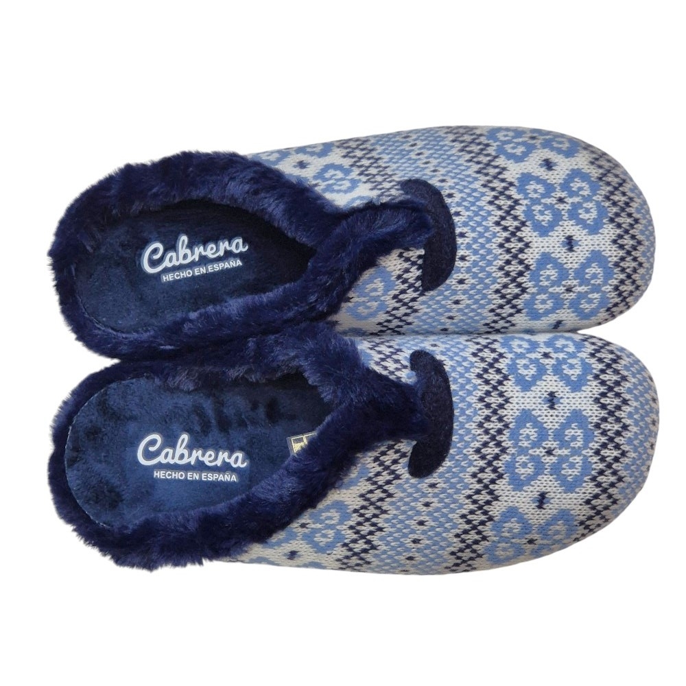 Disfruta de la comodidad y el calor de nuestras pantuflas Cabrera, hechas a mano en España con los mejores materiales. Su diseño nórdico en tonos azules y blancos te envolverá en una sensación de confort durante todo el invierno. ¡Perfecto para relajarte en casa!