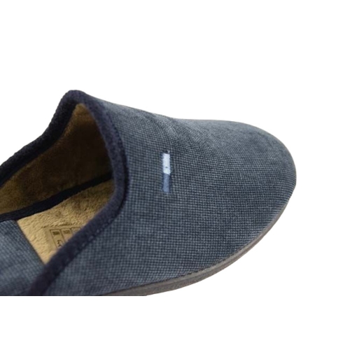 Estas zapatillas son lisas, confeccionadas en un tejido cálido, extremadamente suave y confortable al contacto con la piel. Proporcionan un calor único, protegiendo los pies y aislando del frío. Son un diseño de Cabrera, elaborado en España con materiales de alta calidad. Cuentan con una puntera espaciosa y un talón acolchado para mayor comodidad. La suela es de goma antideslizante, que garantiza una buena adherencia. Se ofrecen en color azul marino.