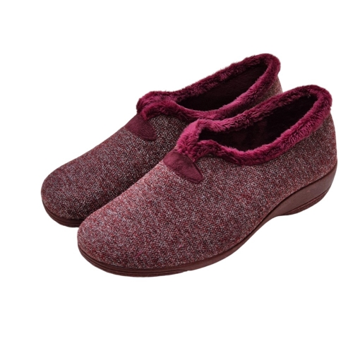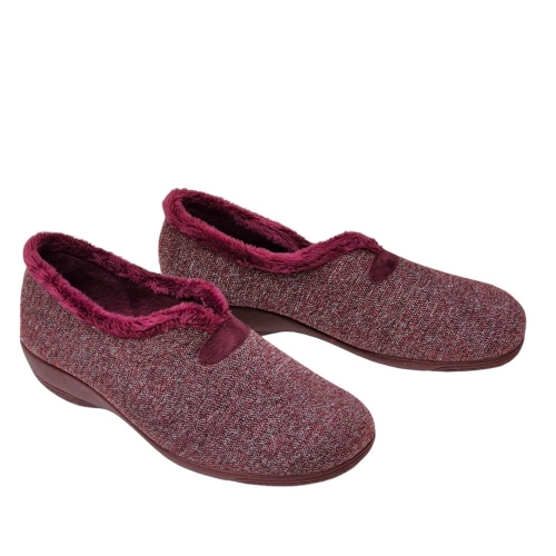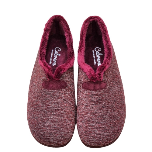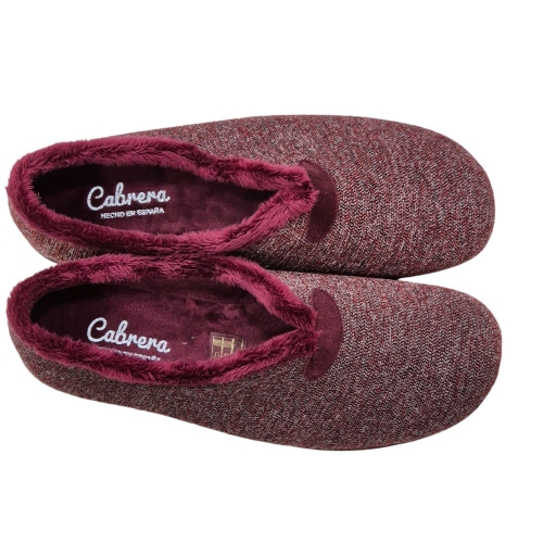 Disfruta de la comodidad y el estilo con nuestras pantuflas Cabrera. Fabricadas en España con materiales de primera calidad, estas zapatillas de interior cuentan con un exterior tejido de punto en un atractivo color borgoña y un forro interior de felpa suave que mantendrá tus pies calientes y acogedores. La suela antideslizante te proporcionará seguridad al caminar por cualquier superficie.