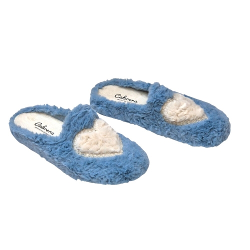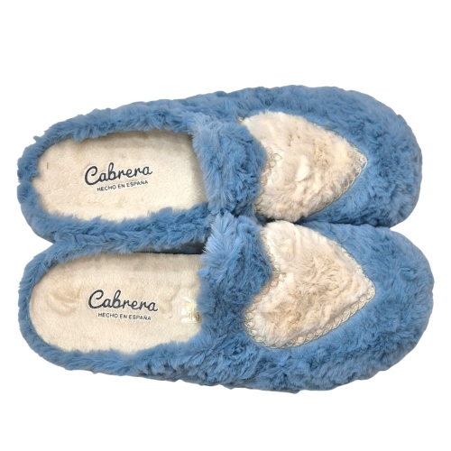 Envuelve tus pies en la suavidad de nuestras pantuflas Cabrera. El tono azul pastel y el corazón en relieve crean un diseño femenino y acogedor. Fabricadas con materiales de alta calidad en España, estas pantuflas son la elección perfecta para relajarte después de un largo día.