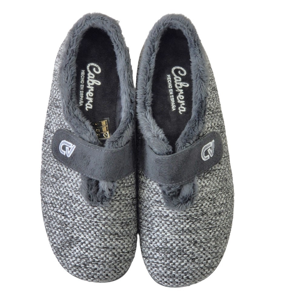 Son un básico que ofrecemos cada año porque satisfacen las necesidades fundamentales. Por ejemplo, su cuña de aproximadamente 4 a 4,5 cm (según la talla) favorece una postura natural de la espalda y proporciona mayor estabilidad. Este modelo cerrado se ajusta con una tira adhesiva, asegurando un calce perfecto. Su forro cálido garantiza pies abrigados. Presenta un diseño simple, clásico pero moderno en color gris que resulta encantador. Combina sin esfuerzo con pijamas y ropa cómoda. En Cabrera, mantenemos los clásicos porque si algo funciona bien, ¿por qué cambiarlo?