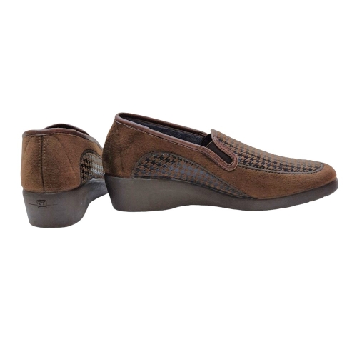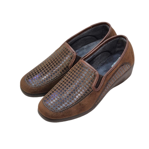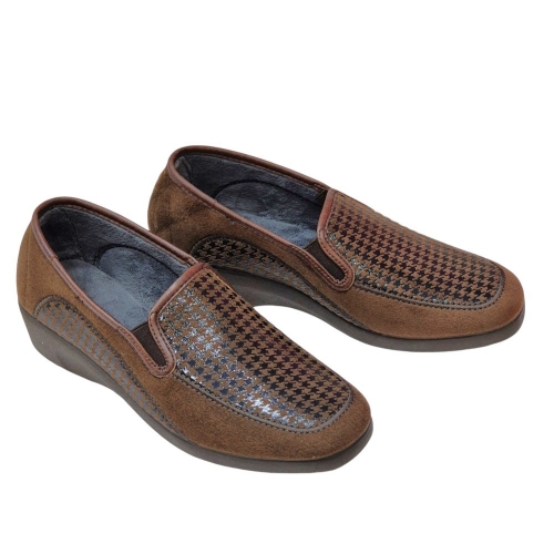 - Diseño Clásico con Toque Moderno: El patrón de pata de gallo en la parte delantera le otorga un toque sofisticado, mientras que el suave ante marrón proporciona un aspecto atemporal.