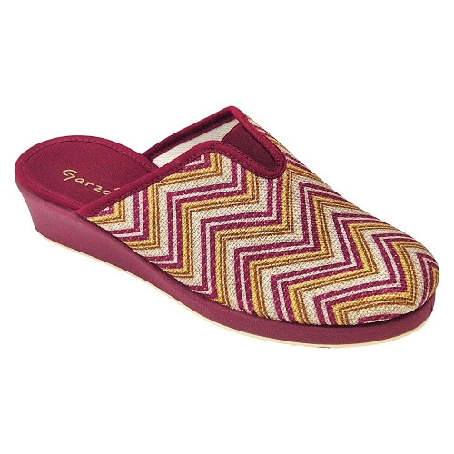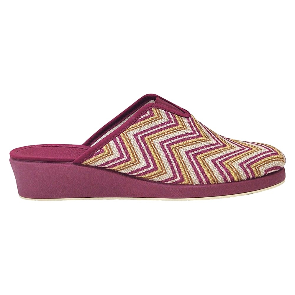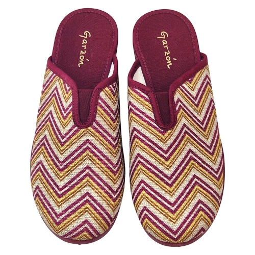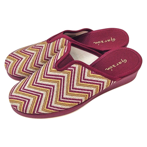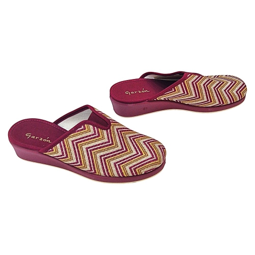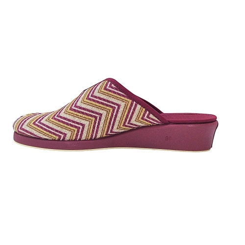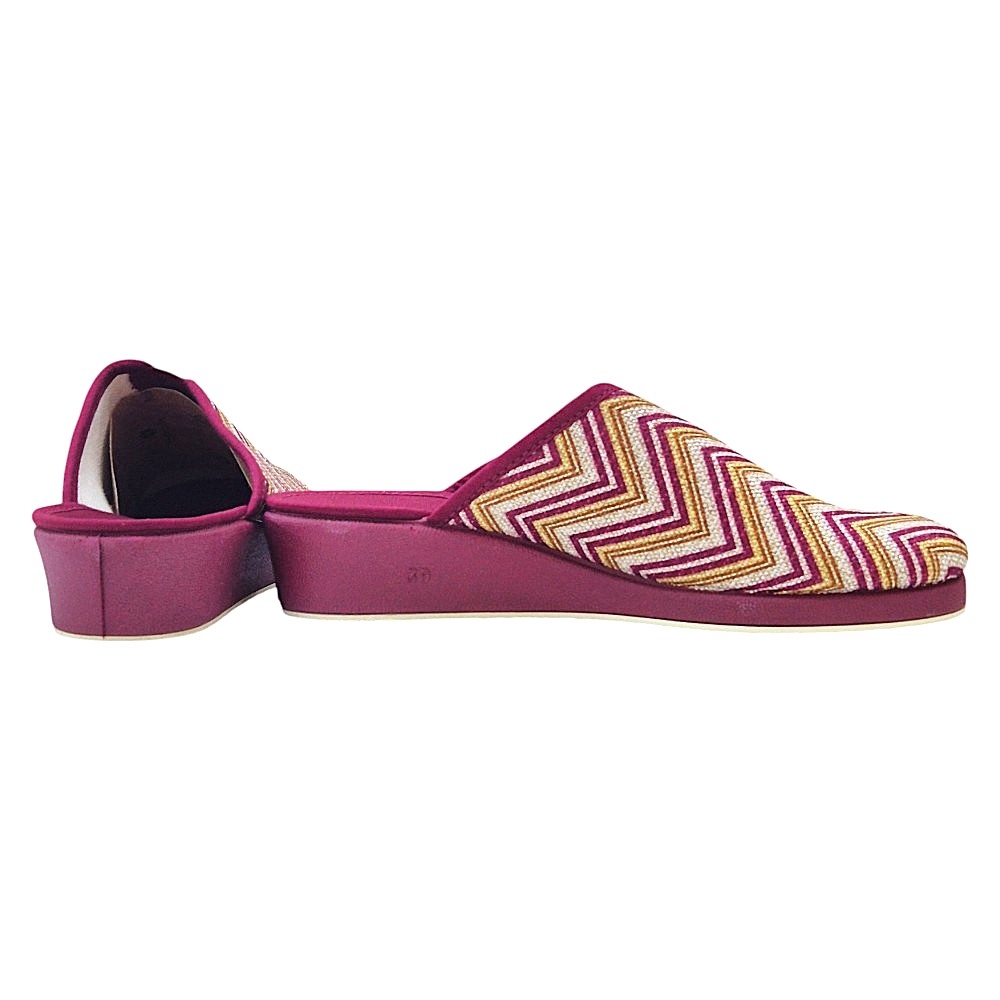 Material: Tejido estampado con patrón zigzag (burdeos, beige dorado) suela de cuña.