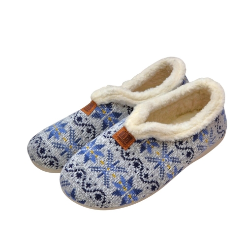 - Diseño: Presentan un diseño clásico y acogedor, con un patrón tejido que combina diferentes tonos de azul y gris, creando un motivo invernal con copos de nieve. Este diseño es atemporal y versátil, perfecto para complementar cualquier estilo de decoración en el hogar.