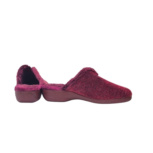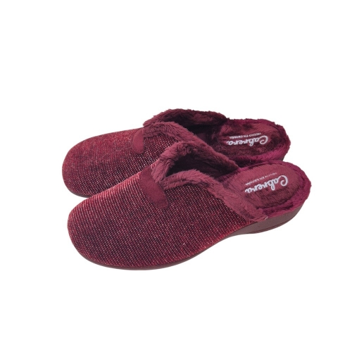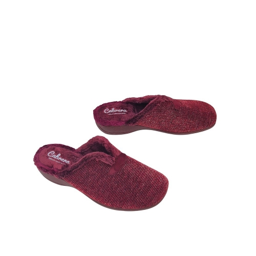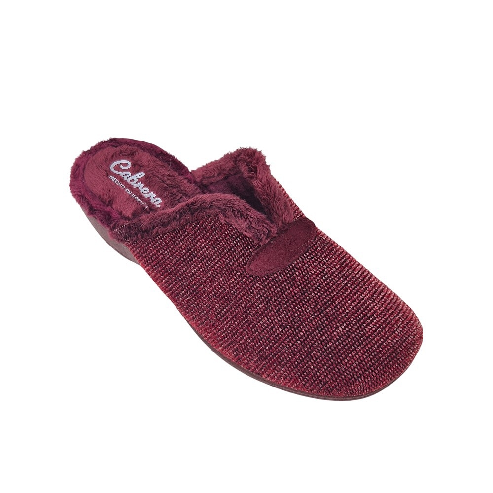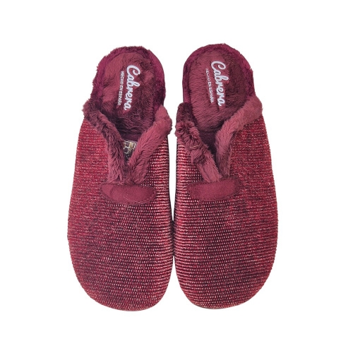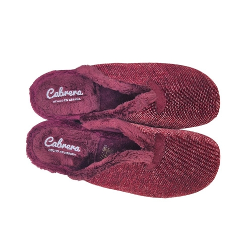 Zapato de casa Cabrera para mujer, modelo 5630, en color burdeos. Confeccionado en un tejido de punto de color burdeos que combina diferentes tonos para crear un efecto jaspeado. El interior está forrado con un suave pelo sintético que te proporcionará la máxima calidez y confort en los días fríos. La suela, ligera y flexible, ofrece un buen agarre y aislamiento térmico. Un modelo clásico y elegante, perfecto para disfrutar de tus momentos de relax en casa. Fabricado en España.