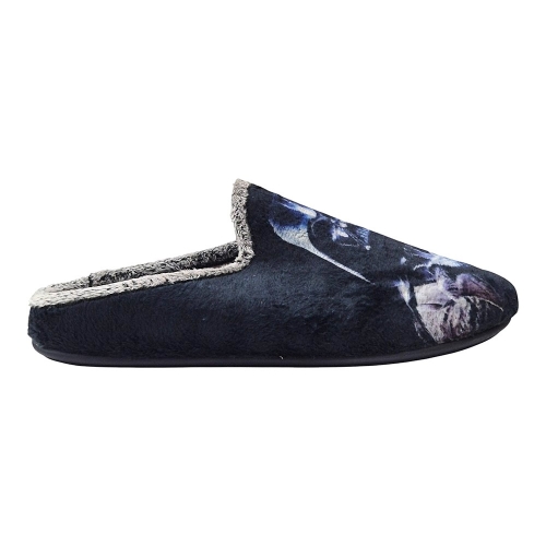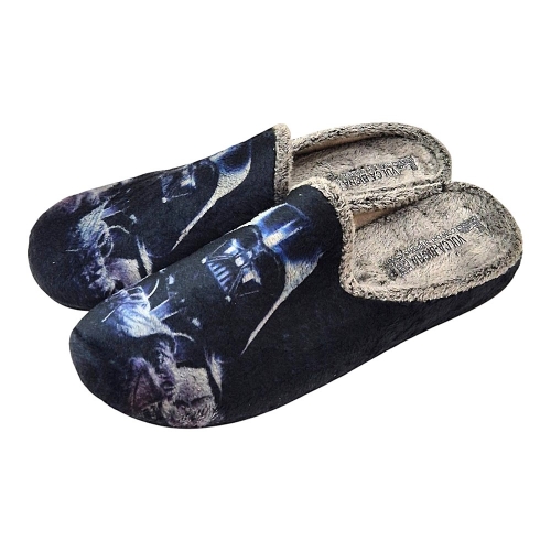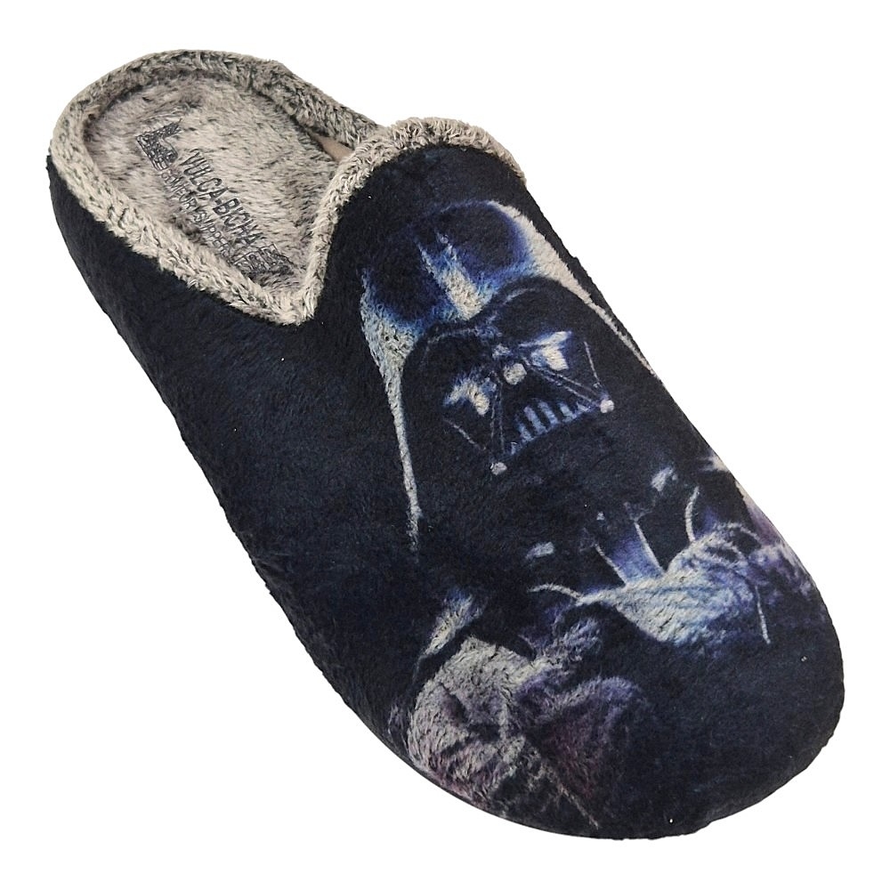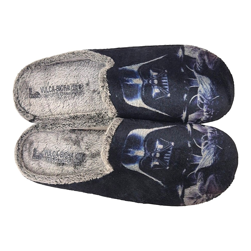 Sumérgete en la galaxia de la relajación con nuestras exclusivas zapatillas de casa Vulca-Bicha, modelo 1807, con el icónico diseño "ICEBER NEGRO DARTH VADER".