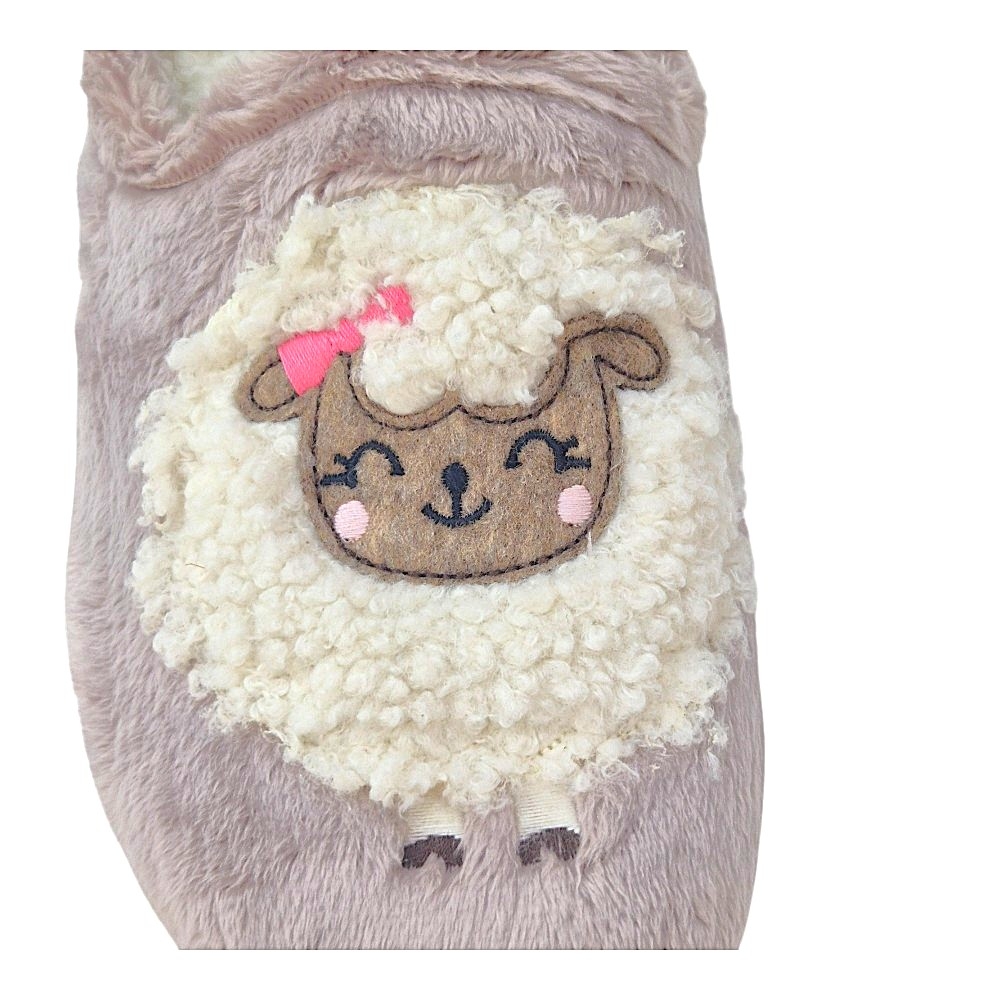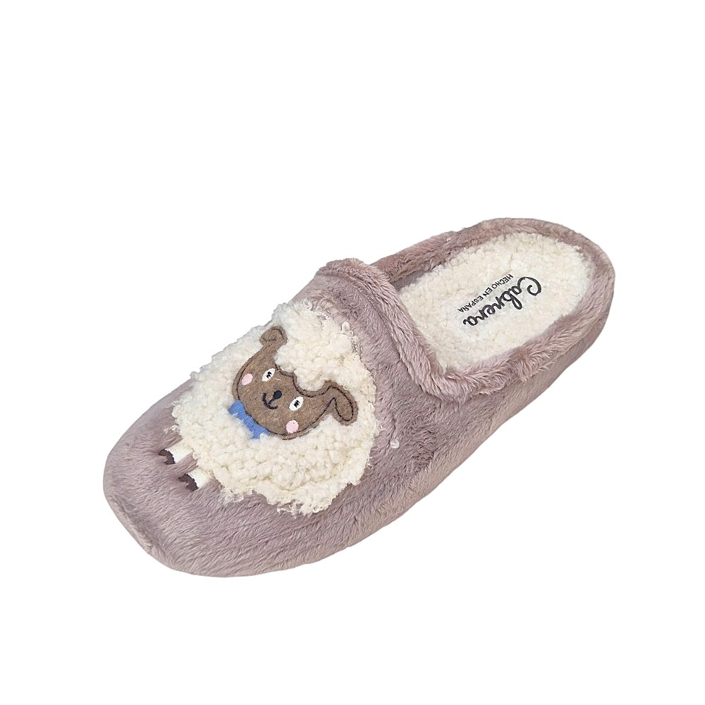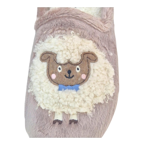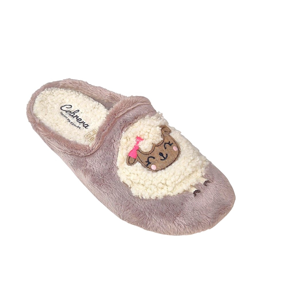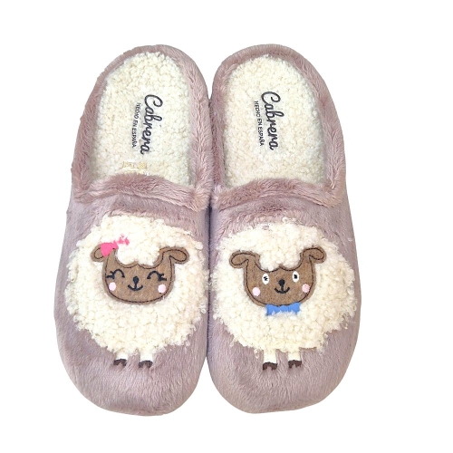 Su diseño, pensado para los amantes de los detalles adorables, presenta un encantador par de ovejas bordadas sobre el empeine. Una de ellas, con un coqueto lazo rosa en su cabeza, y la otra con una elegante pajarita azul, lo que las hace perfectas tanto para él como para ella. El suave color visón de la base se complementa a la perfección con la textura de borreguito de color crudo que simula el pelaje de los corderos y el forro interior.