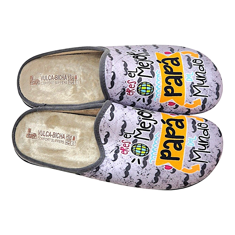 Sorprende a papá con un regalo que le brindará comodidad y le recordará cuánto lo quieres: las zapatillas de casa Vulca Bicha con el cariñoso mensaje "Eres el Mejor Papá del Mundo". Estas zapatillas combinan un diseño divertido y original con la calidad y el confort que caracterizan a la marca Vulca Bicha, especialista en calzado para el hogar.