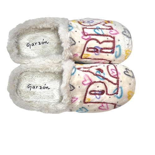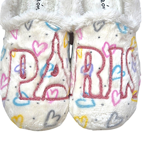 ¡Déjate llevar por la magia de París! Nuestras zapatillas de andar por casa están confeccionadas con materiales de alta calidad y cuentan con un diseño exclusivo de corazones y la palabra 'Paris' bordada. Perfectas para cualquier fan de la moda y la cultura francesa.