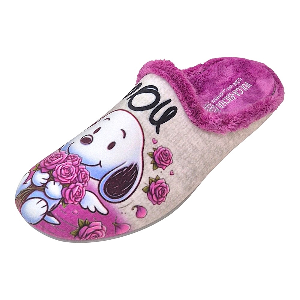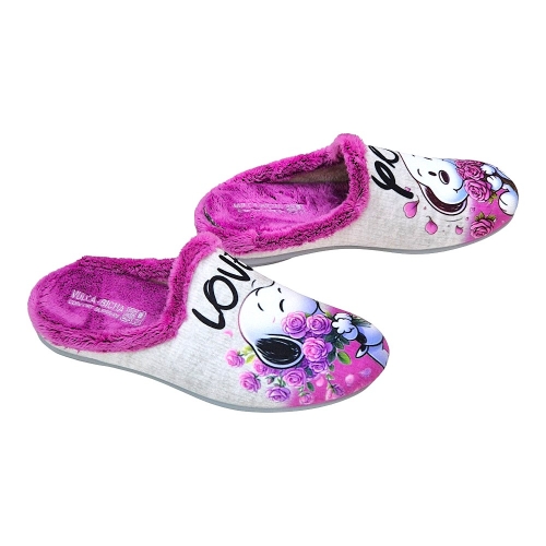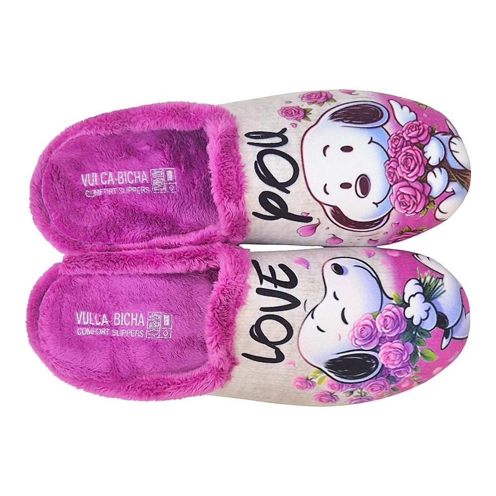 Zapatillas de Casa Vulca-Bicha Modelo 1372 - Perla Frambuesa Perritos "Love You"
