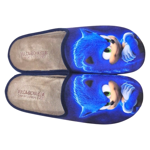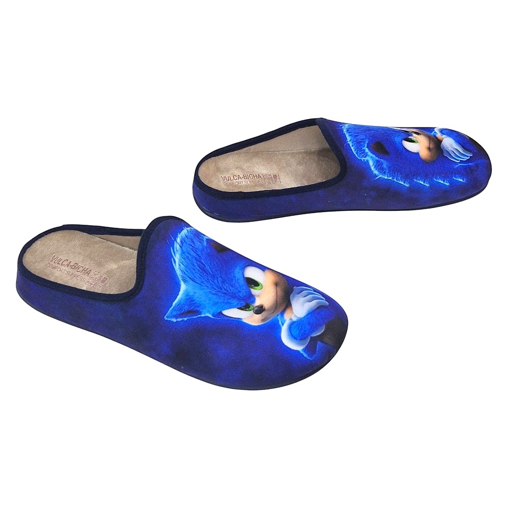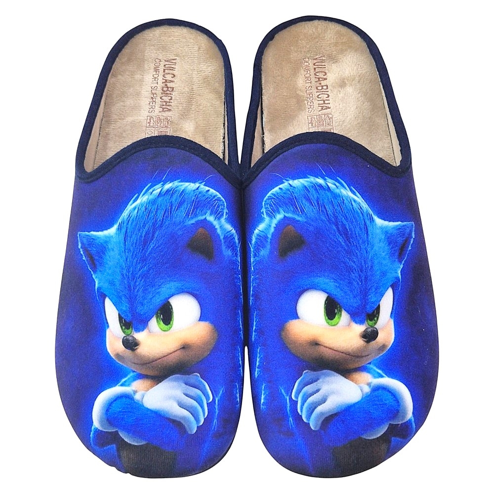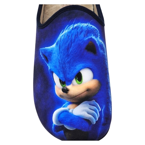 Diseño: Cuentan con un diseño de calzado abierto en el talón que las hace fáciles de poner y quitar. La parte superior de las pantuflas muestra una imagen del popular personaje Sonic the Hedgehog, con su característico pelaje azul y ojos verdes.