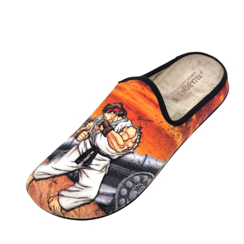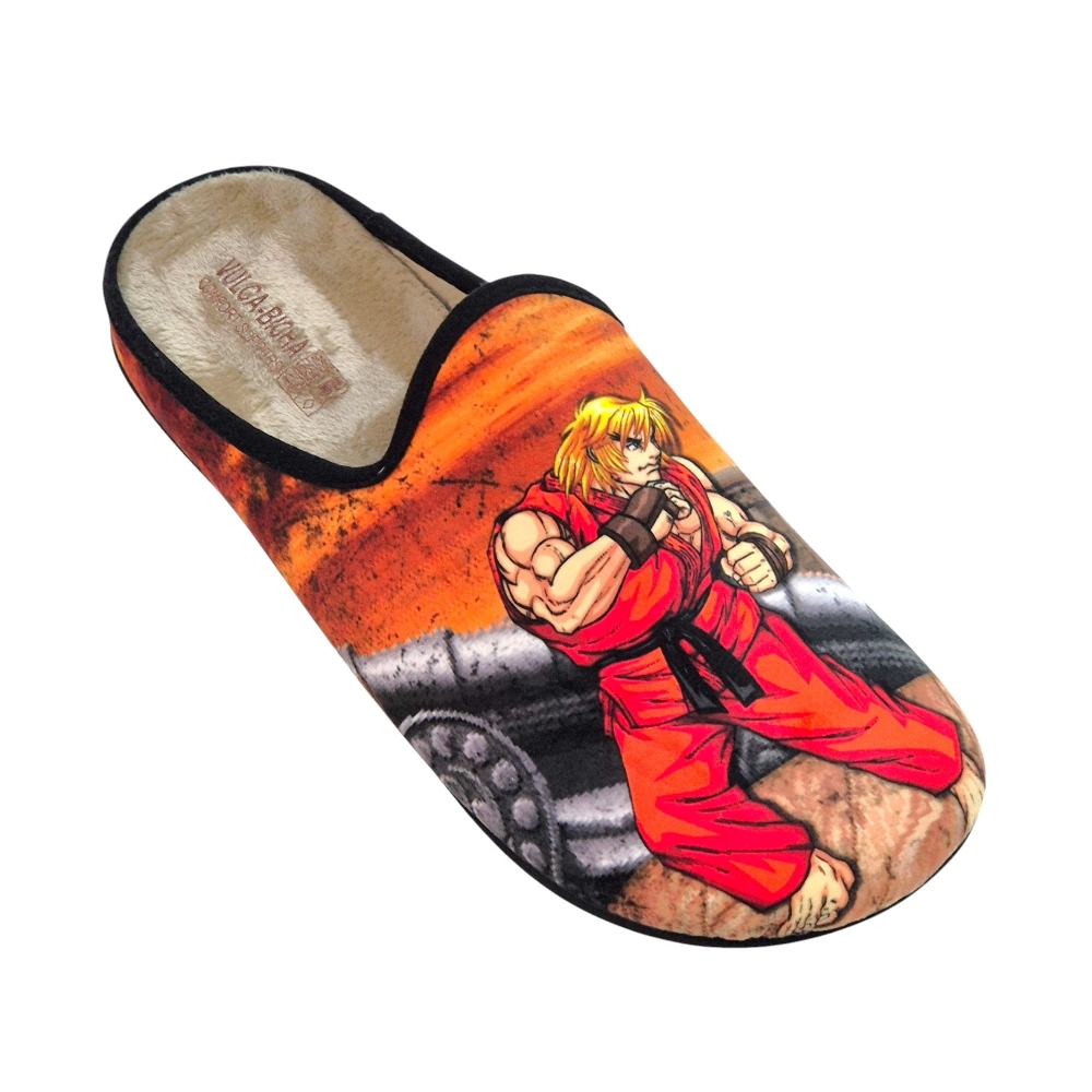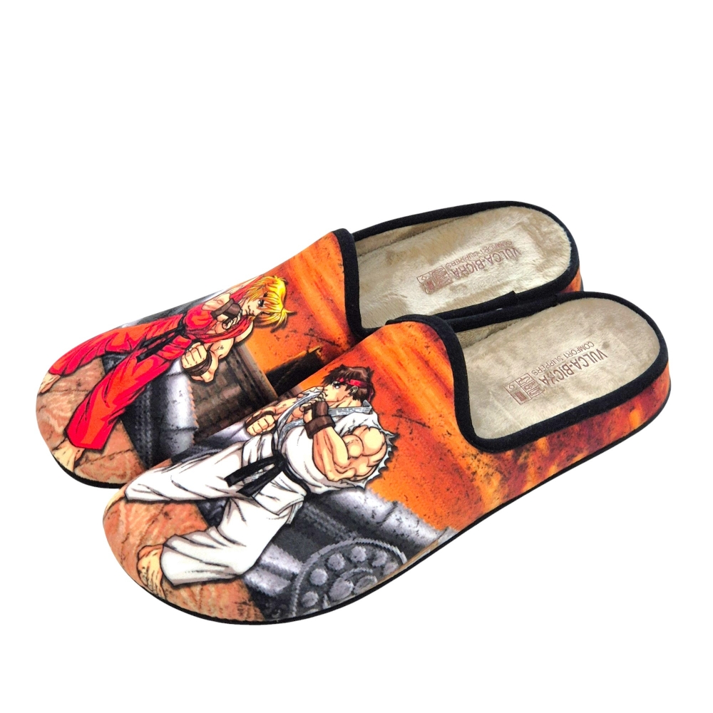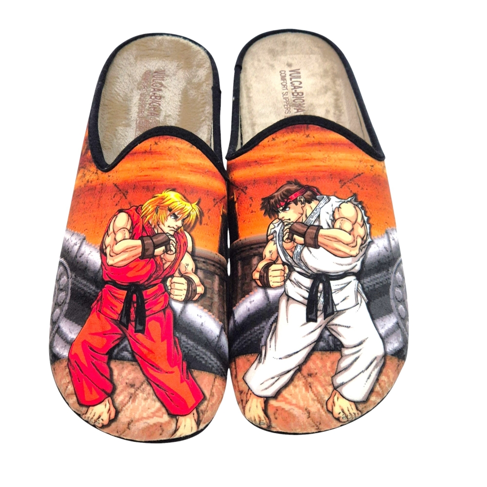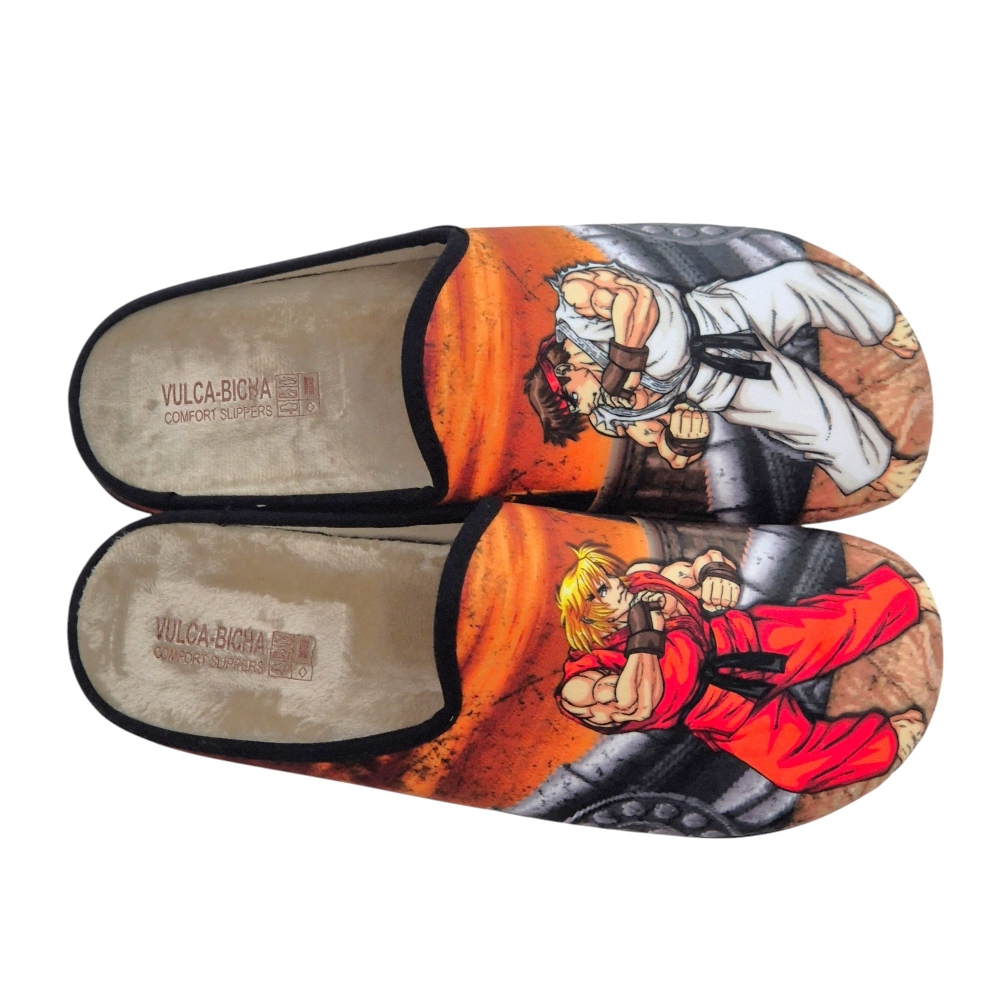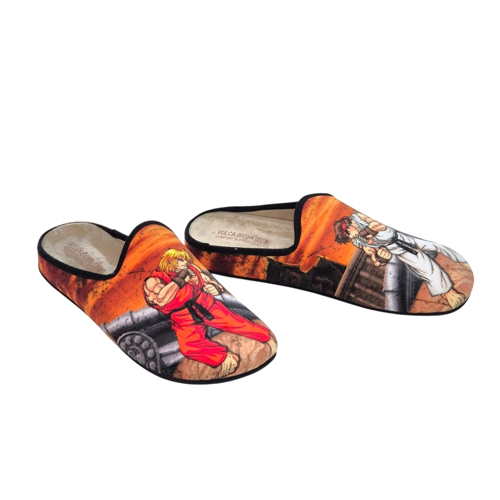 Estas zapatillas de casa de la reconocida marca española Vulca Bicha son una auténtica delicia para los amantes de los videojuegos retro y, en especial, de la saga Street Fighter. Con un diseño vibrante y lleno de nostalgia, estas pantuflas te transportarán directamente a las emocionantes batallas entre Ryu y Ken.
