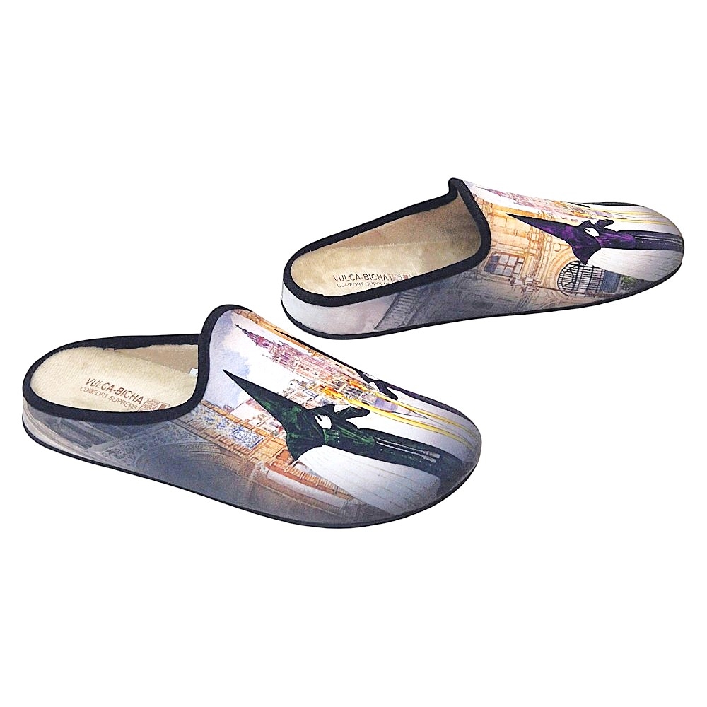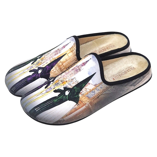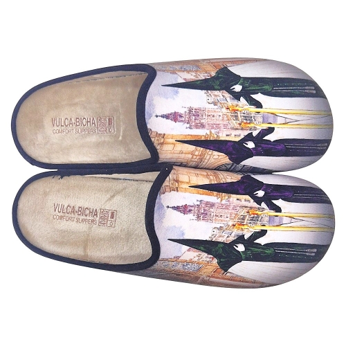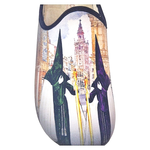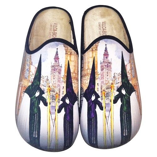 Lleva la esencia de la Semana Santa de Sevilla a la comodidad de tu hogar con estas zapatillas de casa "Cofrade" de la marca Vulca-Bicha. Diseñadas para quienes aprecian la tradición y la devoción, estas zapatillas capturan la solemnidad y la belleza de los nazarenos sevillanos en pleno corazón de la ciudad.