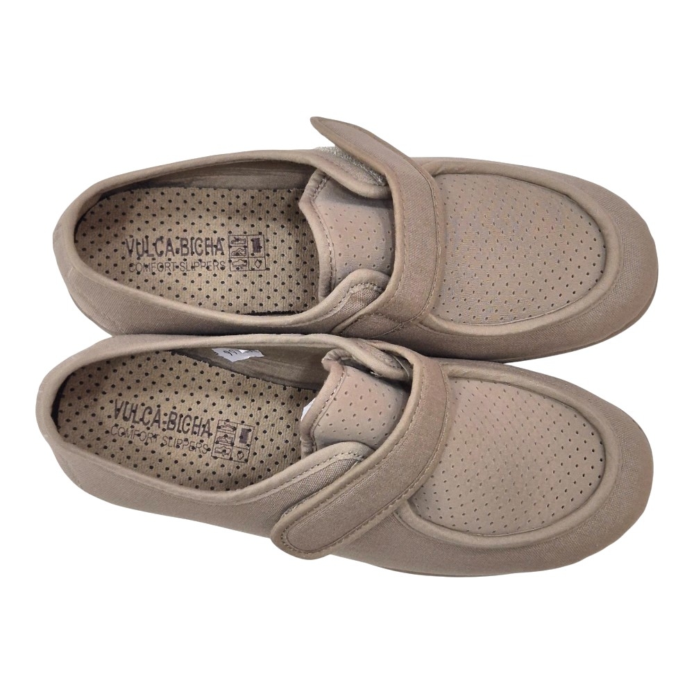 Las zapatillas Vulca-Bicha Modelo 166 son la solución definitiva para quienes buscan un calzado doméstico que combine soporte, transpirabilidad y una adaptación perfecta al pie. Diseñadas específicamente bajo el concepto de calzado de confort, este modelo en color beige es ideal para pies delicados o personas que pasan mucho tiempo de pie en casa.