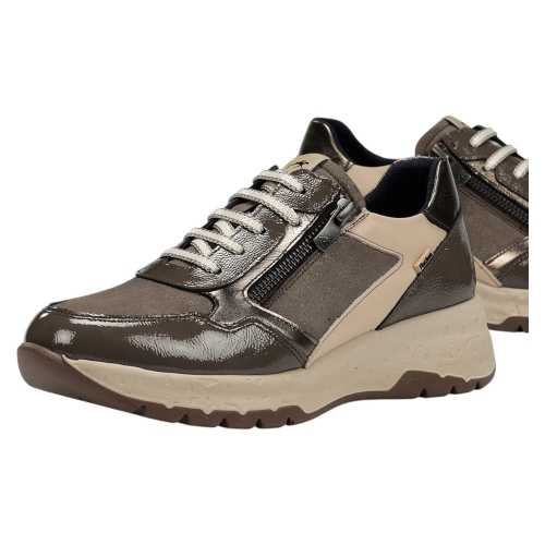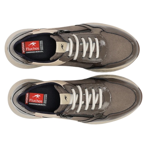Las zapatillas Fluchos Nexus F2308 combinan a la perfección un estilo moderno y versátil con el máximo confort. Su diseño, en un atractivo tono NAPLACK TAUPE, destaca por la mezcla de diferentes texturas y acabados en piel, lo que les confiere un toque distintivo y sofisticado sin sacrificar la sobriedad.