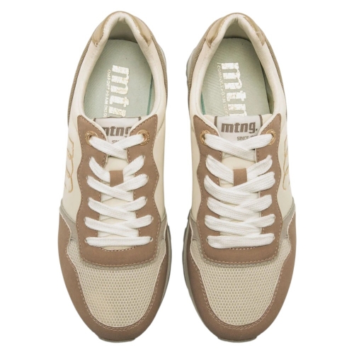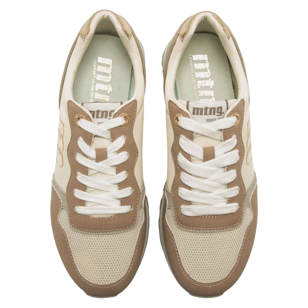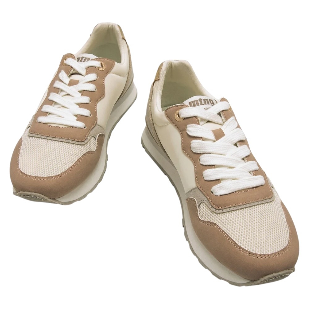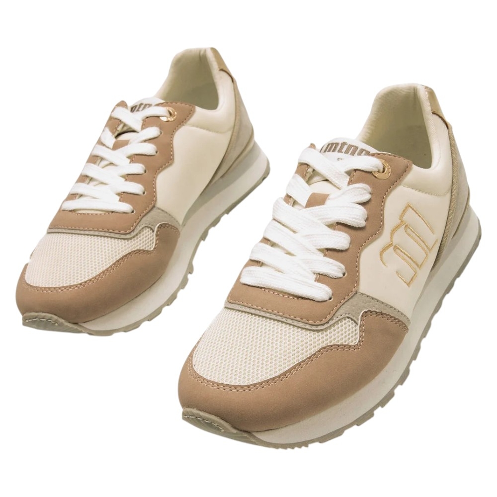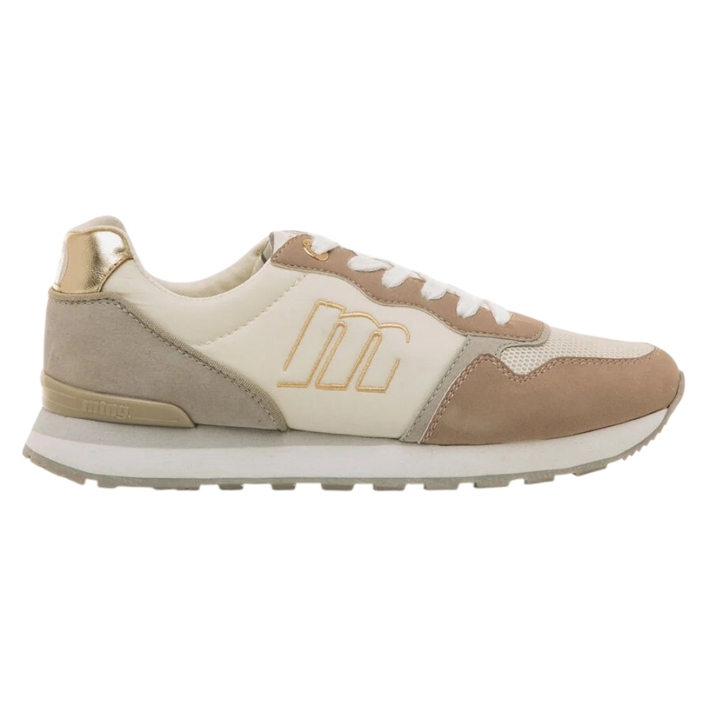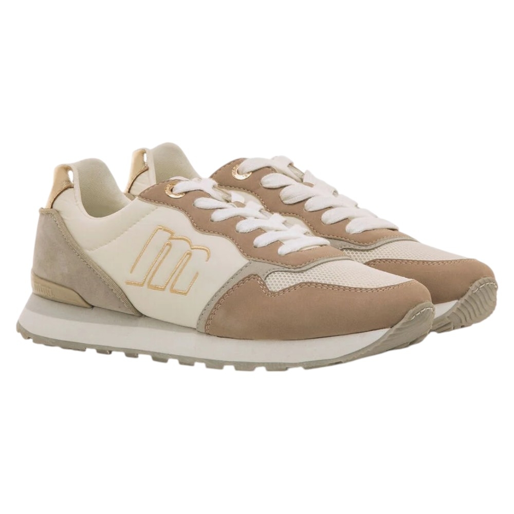 Eleva tu estilo casual con las zapatillas Joggo Classic de Mustang, un diseño que fusiona a la perfección la estética moderna con la comodidad funcional. En una elegante combinación de beige y blanco con toques dorados, estas deportivas son el complemento ideal para tus looks diarios.