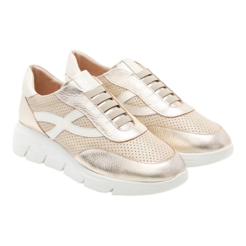 Sneaker mujer combinada en piel combi lino con acabado metalizado y charol. Cierre elástico para un mayor confort, detalles en picado y costuras vistas. Suela dentada en EVA con 5 cm de altura y plantilla extraíble incluida. El modelo que debe estar en tu armario sí o sí por su comodidad, su estilo a la última y su versatilidad.