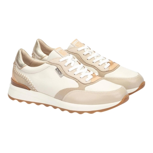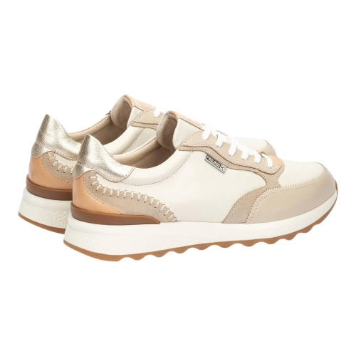 Las zapatillas Pikolinos Arrecife son la definición perfecta de calzado casual de alta gama. Diseñadas para la mujer que busca un equilibrio entre elegancia y bienestar, este modelo destaca por su sofisticada combinación de tonos marfil, crema y detalles metalizados, convirtiéndose en el básico de lujo ideal para tu día a día.