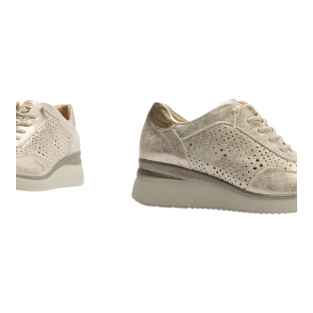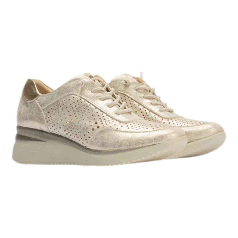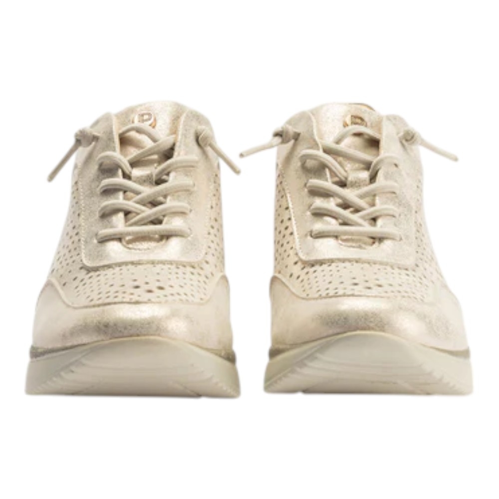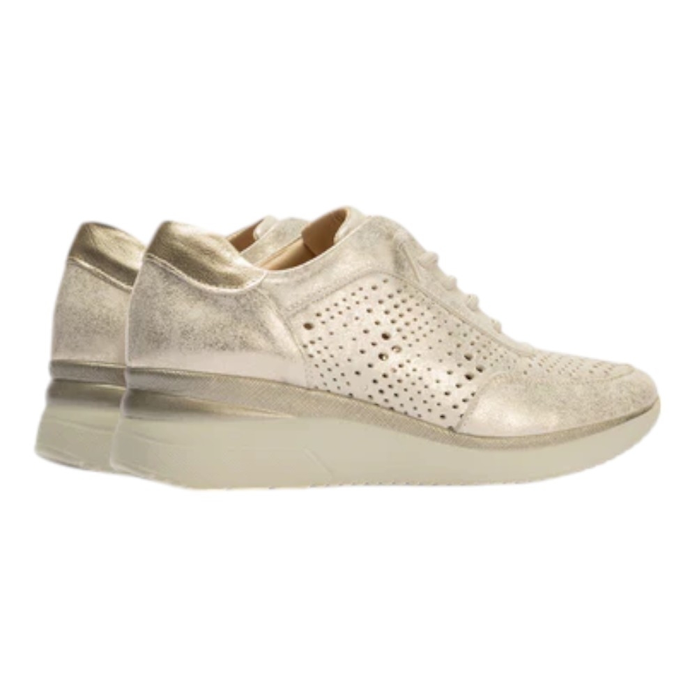 - Estilo Sofisticado: El color oro y el diseño con picados hacen de estas deportivas un calzado moderno y llamativo.
