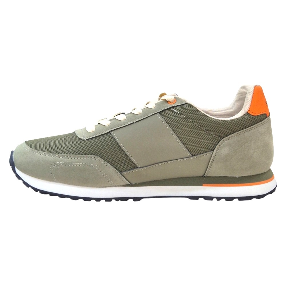 Detalles Distintivos: Destacan los detalles en color naranja en el talón y en la suela, que aportan un contraste dinámico y un toque de estilo único.