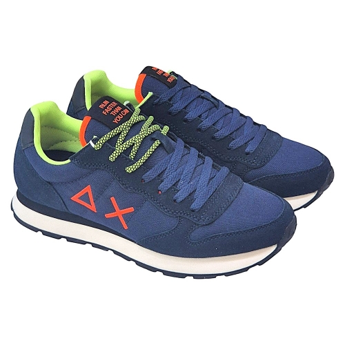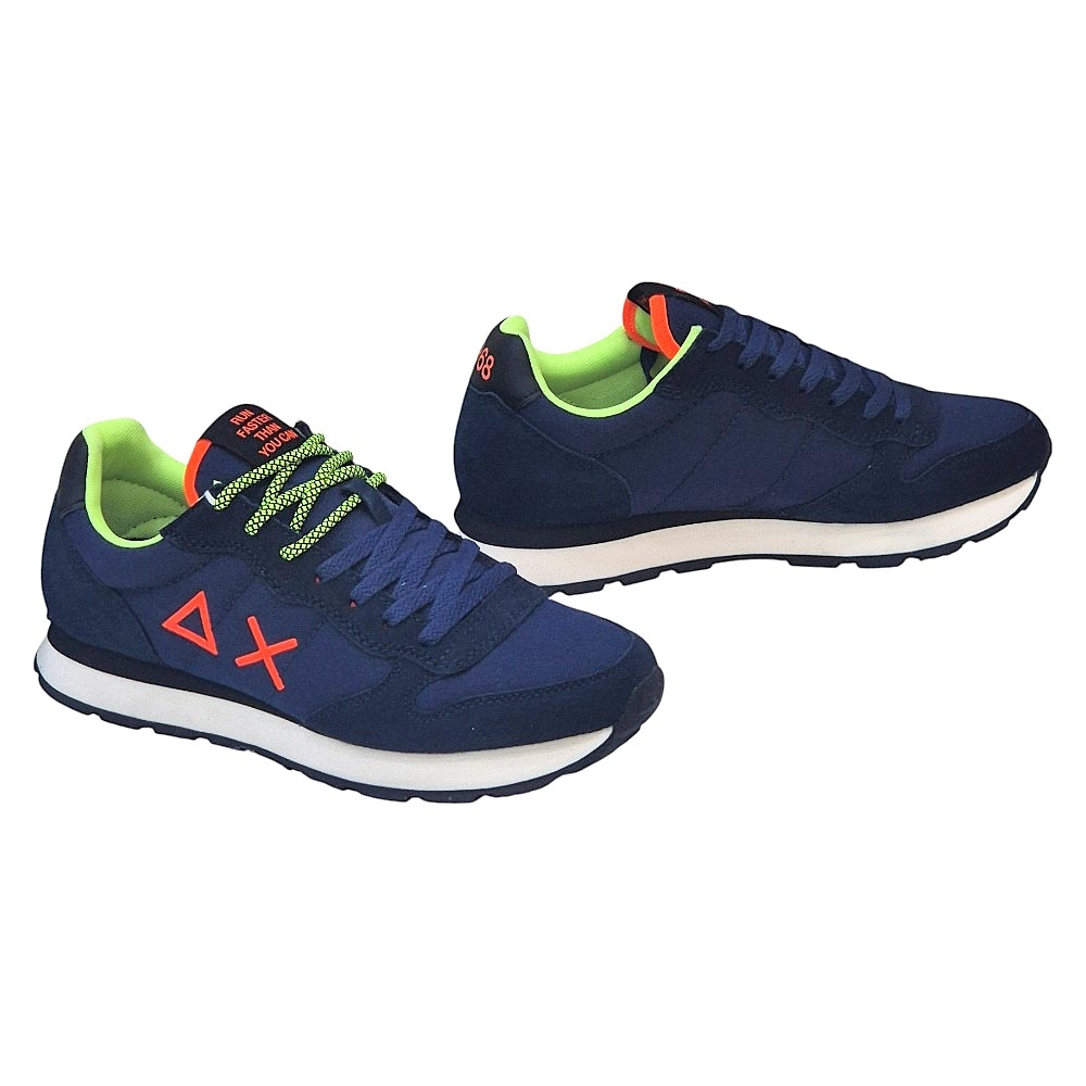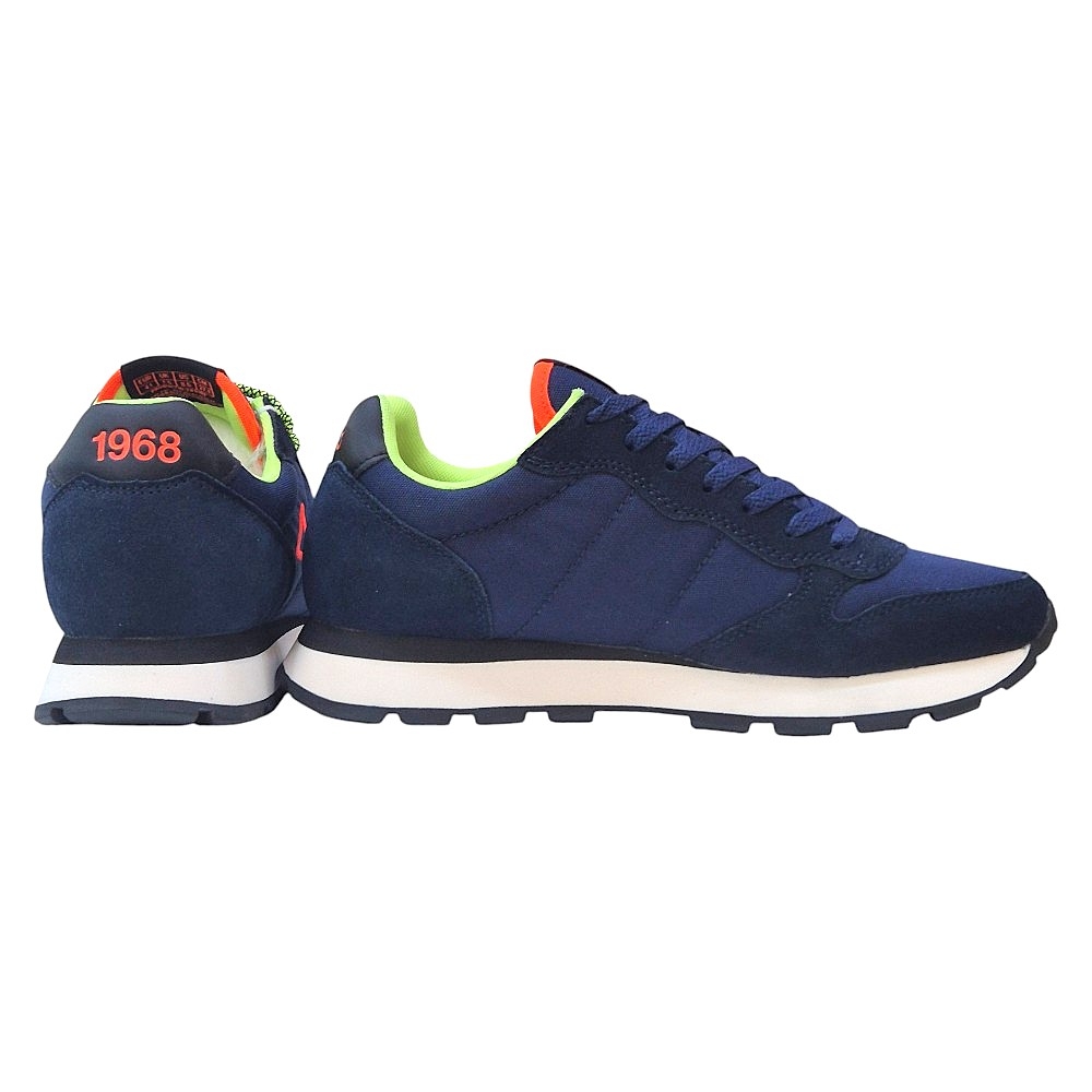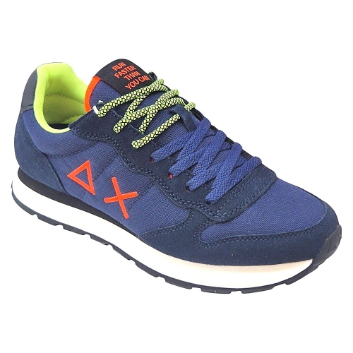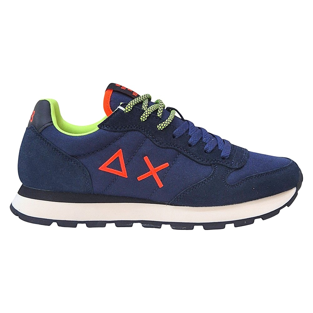 Camina con estilo con las zapatillas Sun68 Tom Fluo, una combinación perfecta de diseño clásico y detalles modernos y vibrantes. Estas zapatillas de estilo running están confeccionadas a partir de una combinación de nailon y ante en color azul marino, ofreciendo tanto durabilidad como un aspecto elegante y texturizado.