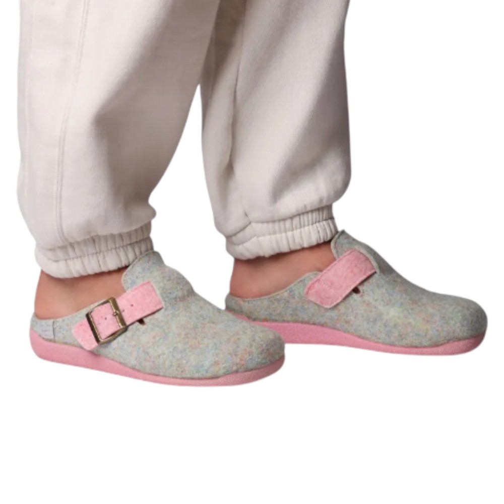 Estas zapatillas se distinguen por su elaboración en fieltro reciclado, ofreciendo un tacto suave y un diseño multicolor atractivo.