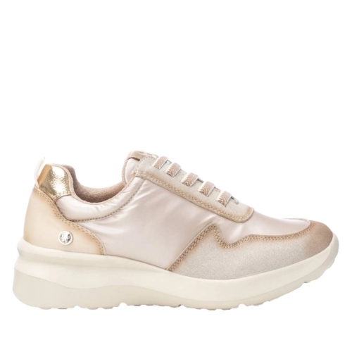 Zapatilla de mujer, de la marca Xti. Fabricada en diversos materiales textiles. Detalles metalizados. Cierre con cordones ajustables. Suela 4 cm de cuña antideslizante. Con plantilla extraíble. Este modelo ha obtenido el certificado vegano por la organización mundial PETA (Organización de los derechos de los animales).