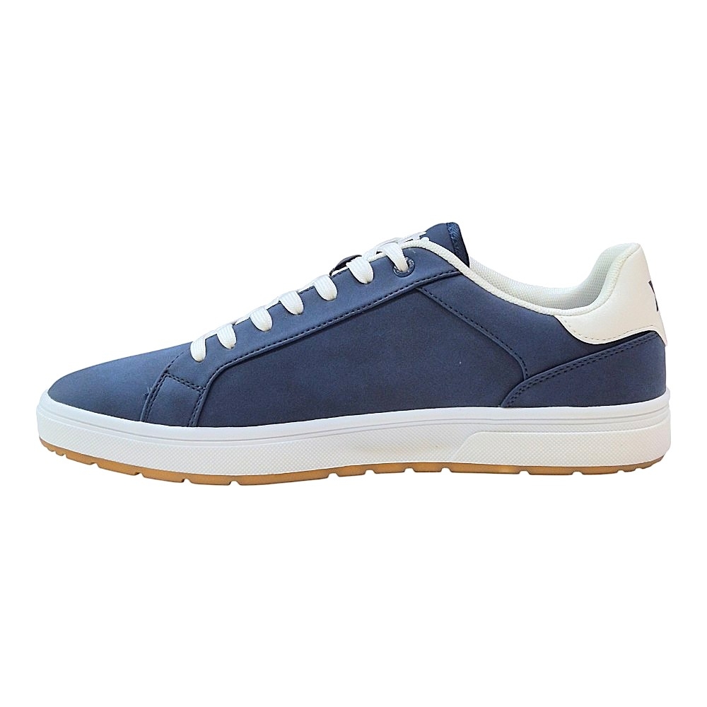 Contraste Elegante: El tono azul marino (Navy) se complementa con detalles en blanco en el talón y la lengüeta, además del icónico logo de la marca en un distintivo parche rojo lateral.