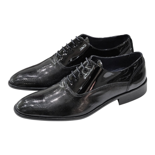 Por su acabado en charol y texturas combinadas, es el complemento ideal para trajes de novio, esmóquines y trajes de etiqueta. Un zapato pensado para el hombre que valora los detalles y busca una pieza distintiva para bodas, galas o eventos de noche.