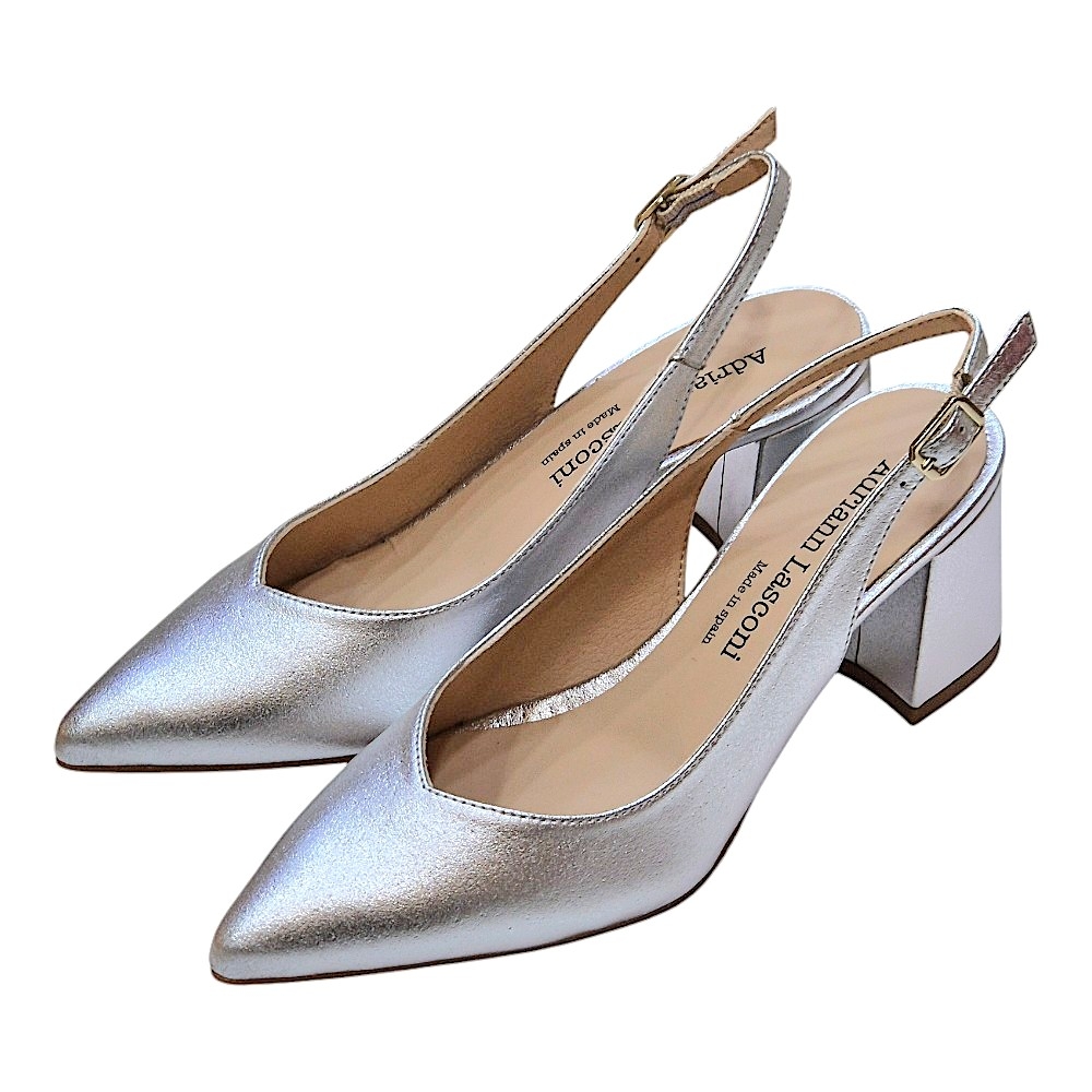 Material: Piel de alta calidad con acabado metalizado plata.