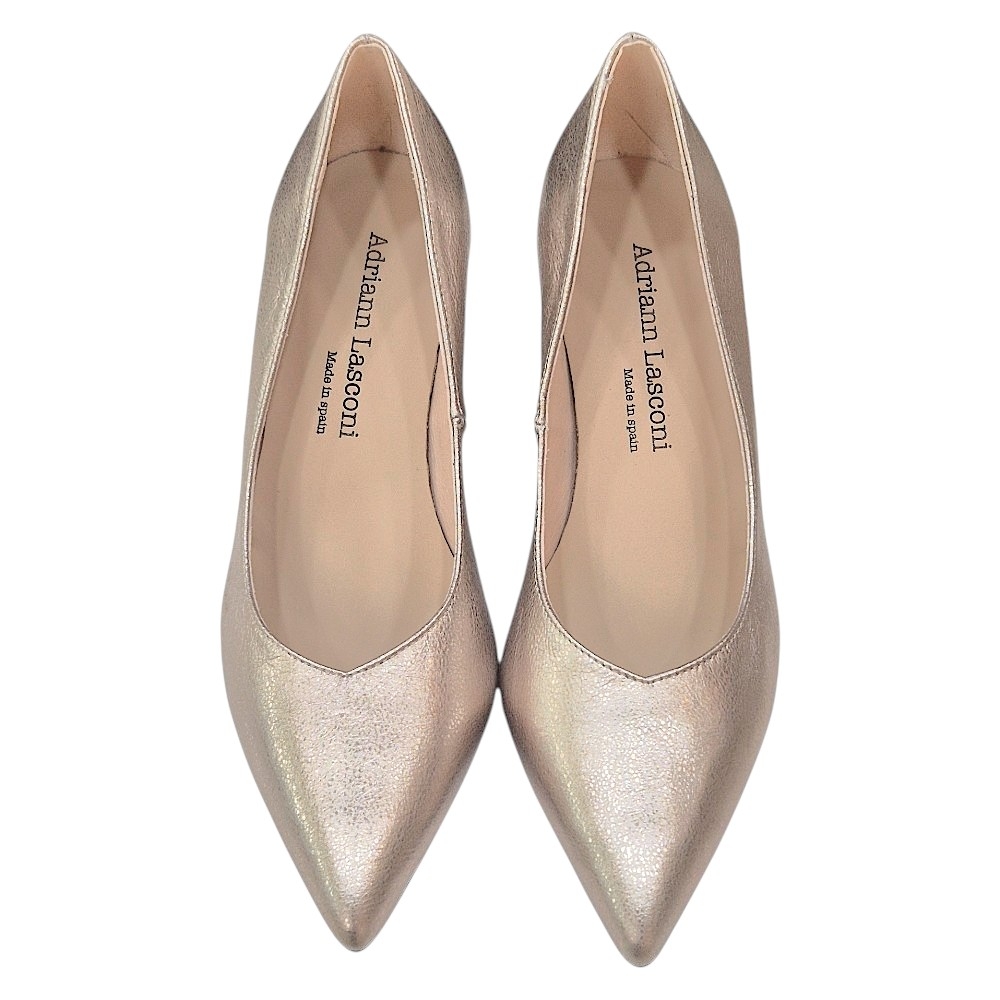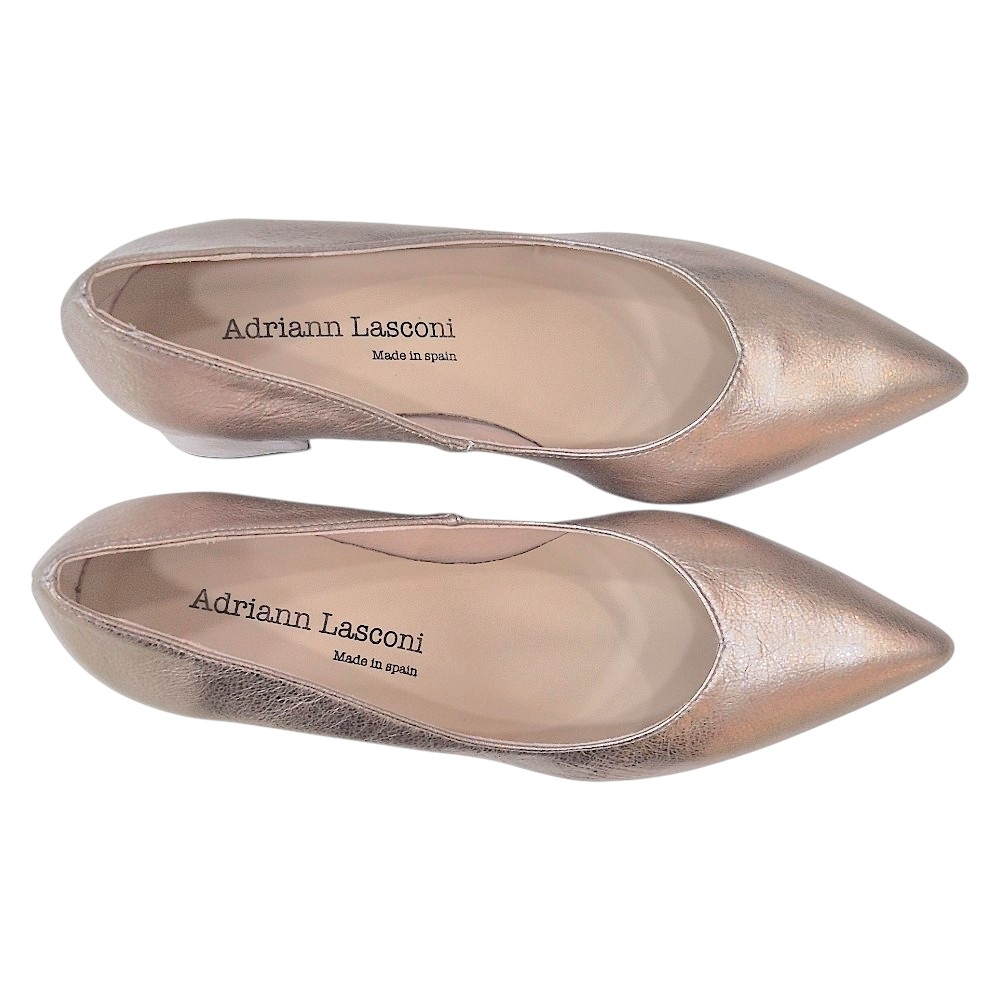 Piel de Alta Calidad con Acabado Metalizado: El zapato está realizado en una exquisita piel con un sofisticado acabado 'Elista Platino'. Este tono dorado-plateado con un ligero brillo texturizado es elegante, actual y muy versátil, añadiendo un toque de luz a cualquier conjunto.