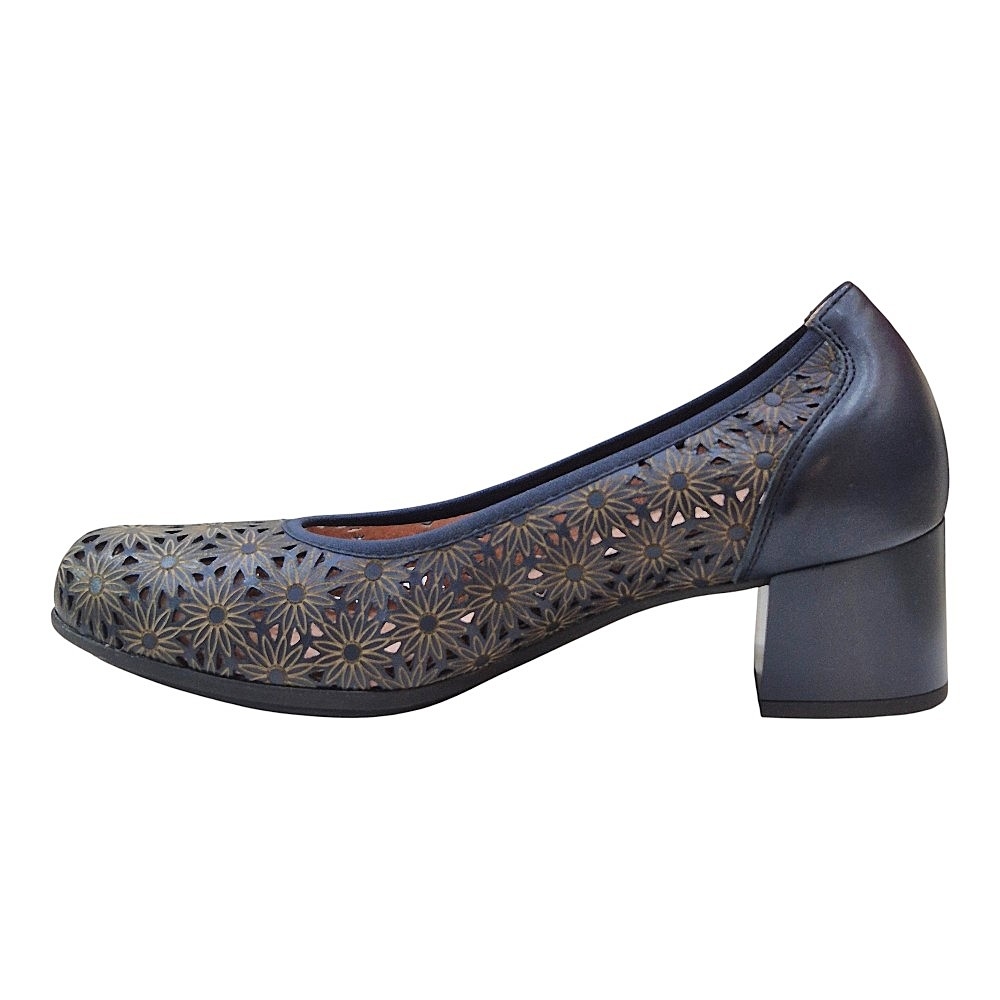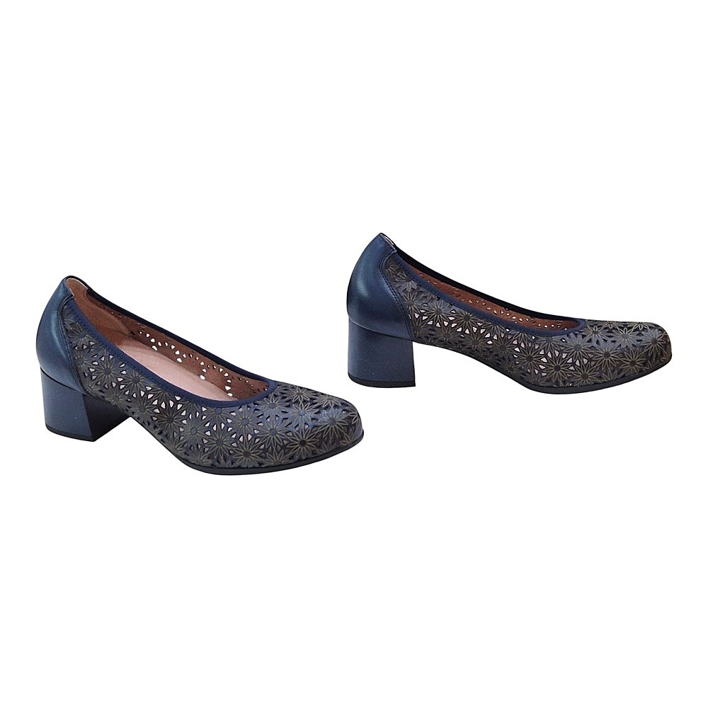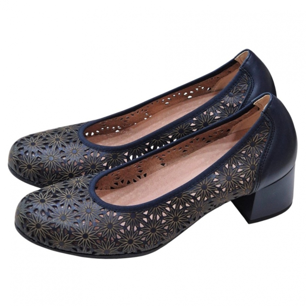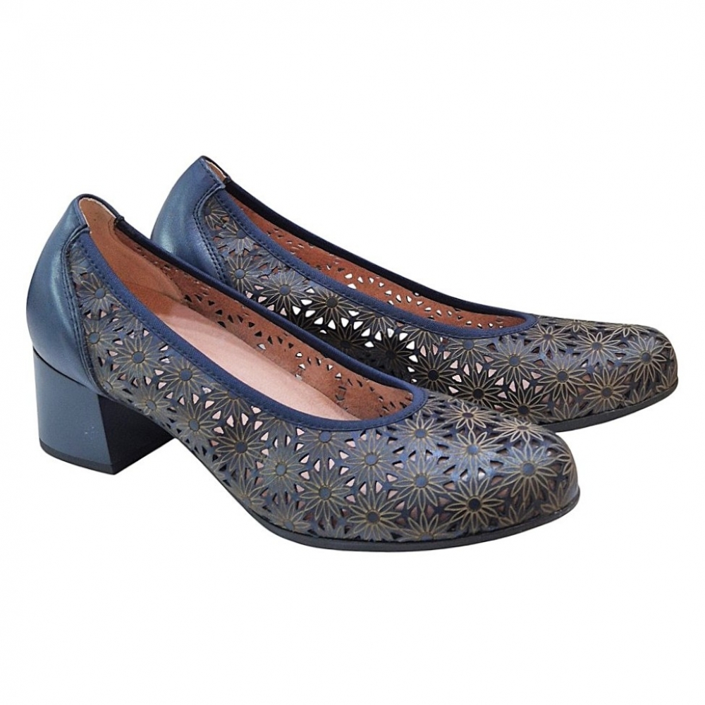 Este modelo destaca por su exquisito grabado calado con motivos florales, que no solo aporta una estética romántica y detallada, sino que garantiza una ventilación óptima del pie, convirtiéndolo en el aliado perfecto para las temporadas de entretiempo y calor. Está confeccionado en piel de primera calidad en un profundo tono marino, ofreciendo una textura suave y una durabilidad excepcional.