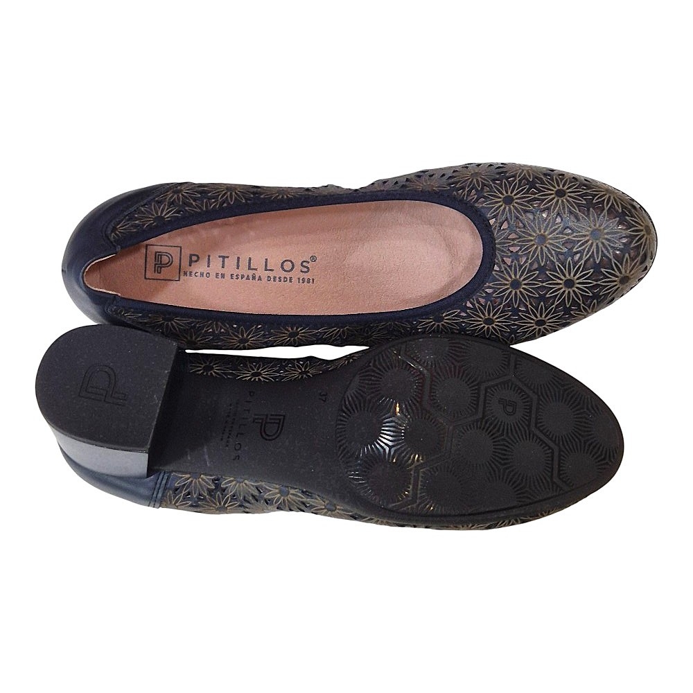 Fiel a la filosofía de Pitillos, este zapato incorpora una plantilla acolchada que absorbe los impactos en cada paso. Su puntera redondeada proporciona el espacio necesario para los dedos, evitando presiones innecesarias. El ajuste es natural y cómodo, permitiendo que el zapato se adapte al movimiento del pie sin esfuerzo.