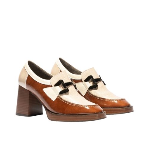 Zapato abotinado para mujer marrón claro de la colección Otoño-Invierno con plantilla extraíble.