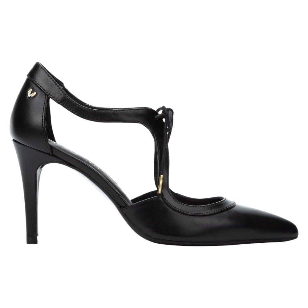 Su diseño distintivo incorpora un sensual escote d’Orsay (corte lateral) complementado con una delicada pulsera en forma de "T" en el empeine, que se ajusta con sutiles cordones finos. Este detalle no solo añade un toque vintage y sofisticado, sino que también garantiza una sujeción perfecta para que pueda exprimir cada momento del día con confianza.