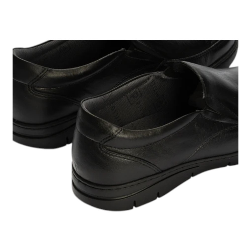 - Diseño Atemporal: El modelo 109 presenta una silueta elegante y sencilla, con un acabado en piel lisa de color negro que irradia sofisticación. Su diseño slip-on, sin cordones, ofrece una comodidad y practicidad excepcionales para calzar y descalzar rápidamente.